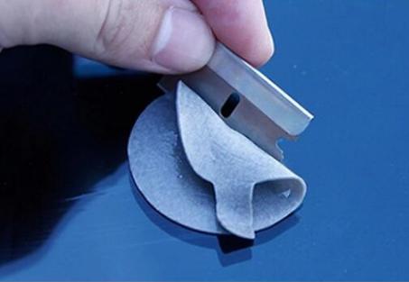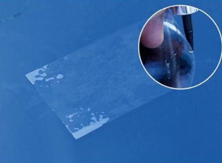 6、撕下固化膜,用刀片来将剩余的胶刮干净。