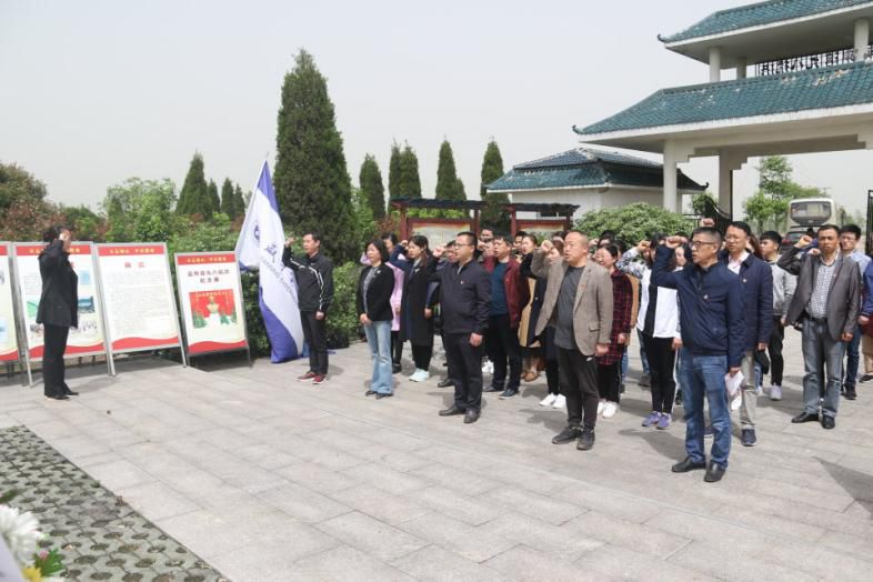 在烈士墓前,党办主任张豫军领誓,大家高举右拳重温了入党誓词,铭记共产党员的使命和担当。