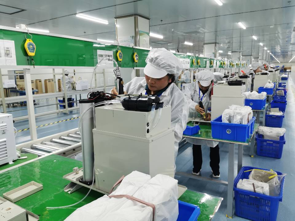 新风科技投产不到半月,每天产能达到3000片。就在它隔壁的10万级无尘车间,同为环保健康产品的制氧机也在同步生产,这两家企业都是今年7月中旬从深圳和广州落户嘉鱼。