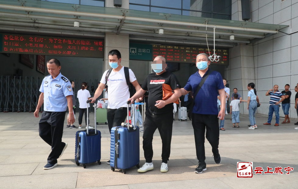 下午3时30分,犯罪嫌疑人陈某在咸安公安分局治安大队专案民警的押送下,走出高铁咸宁北站,被送往咸安公安分局办案中心接受审讯,结束了他2年多的境外逃亡生涯。
