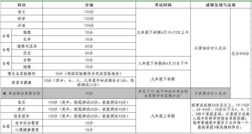 ▲初中学业水平考试相关内容一览表