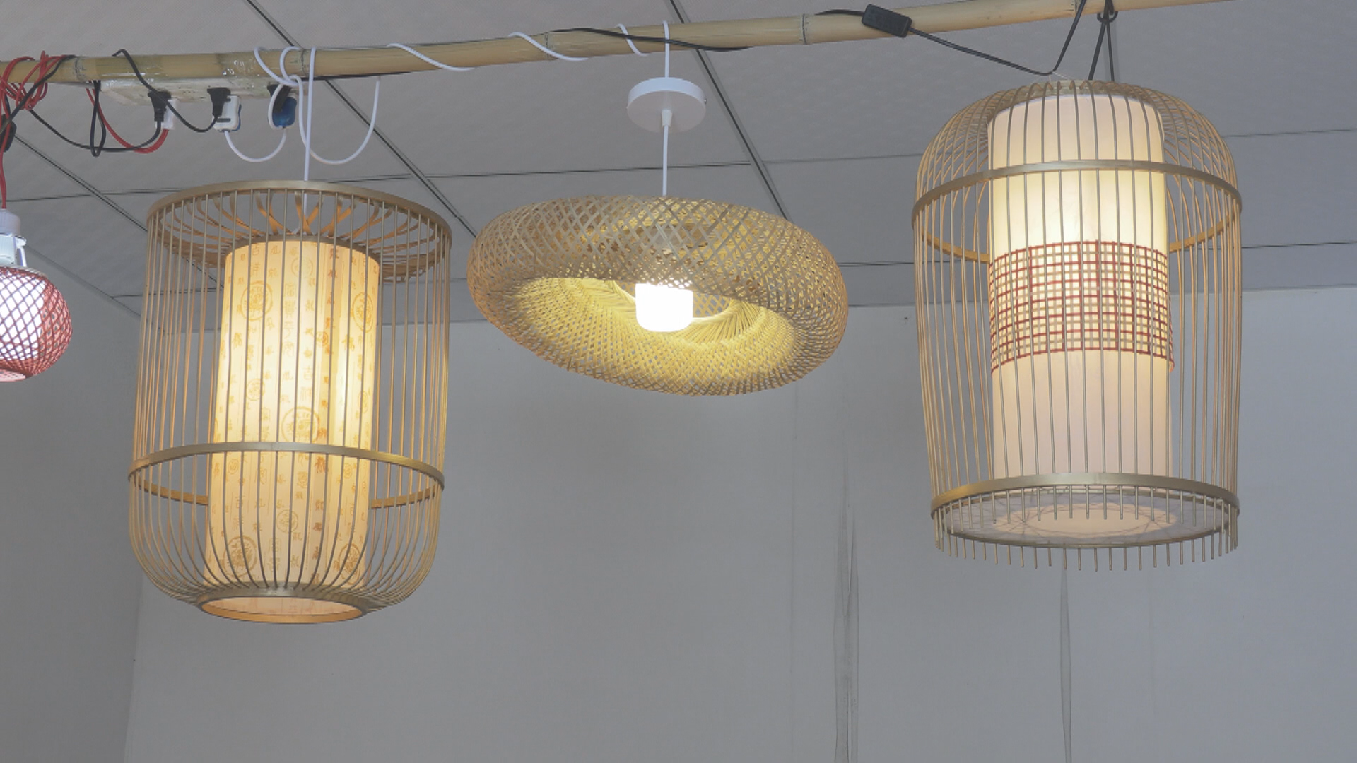竹灯玲珑小巧、竹篓精致可爱、竹包实用大方…… 在该村村委会旁的艺竹情加工厂,工人们正在为竹根抛光,一旁的竹货架上,各类竹工艺品琳琅满目,年订单额突破700余万。