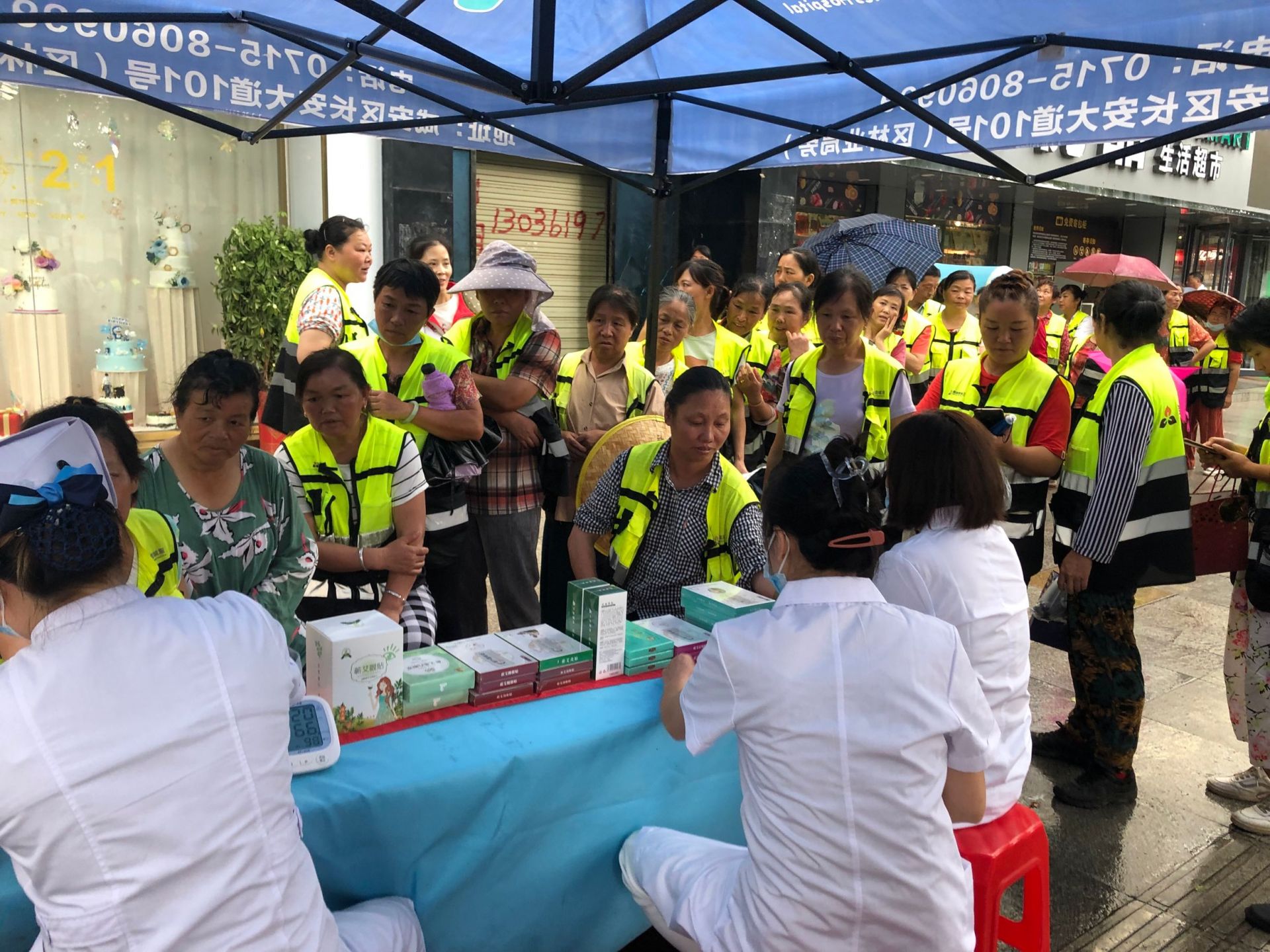 云上咸宁报道(记者 夏晖)7月17日,在永安大道一处蛋糕店门外,环卫工人排起了长队,依次进行测量血压、脉搏等检查,在检查完毕后领取由咸宁阳光助困协会提供的毛巾和消毒液礼包一份。