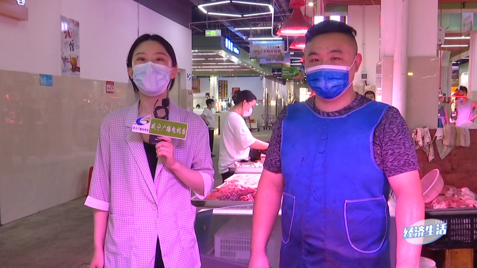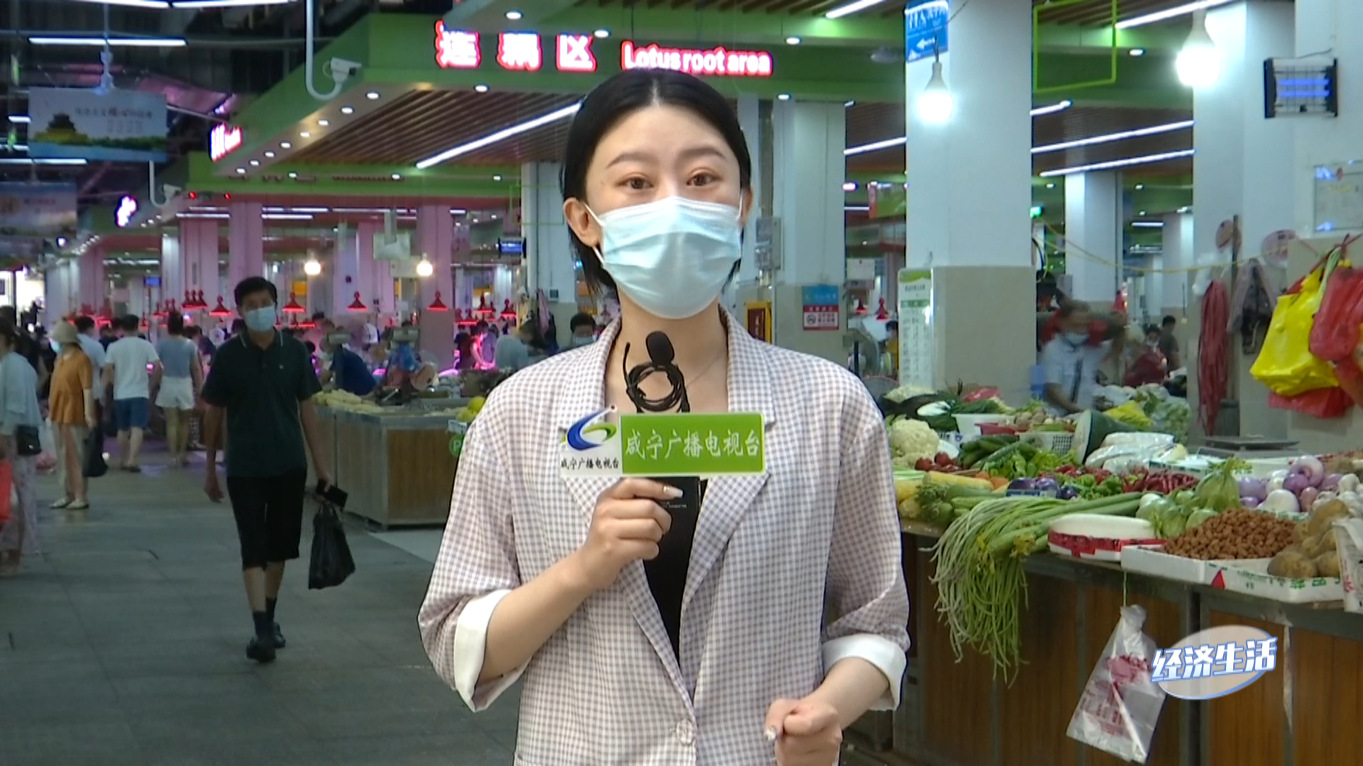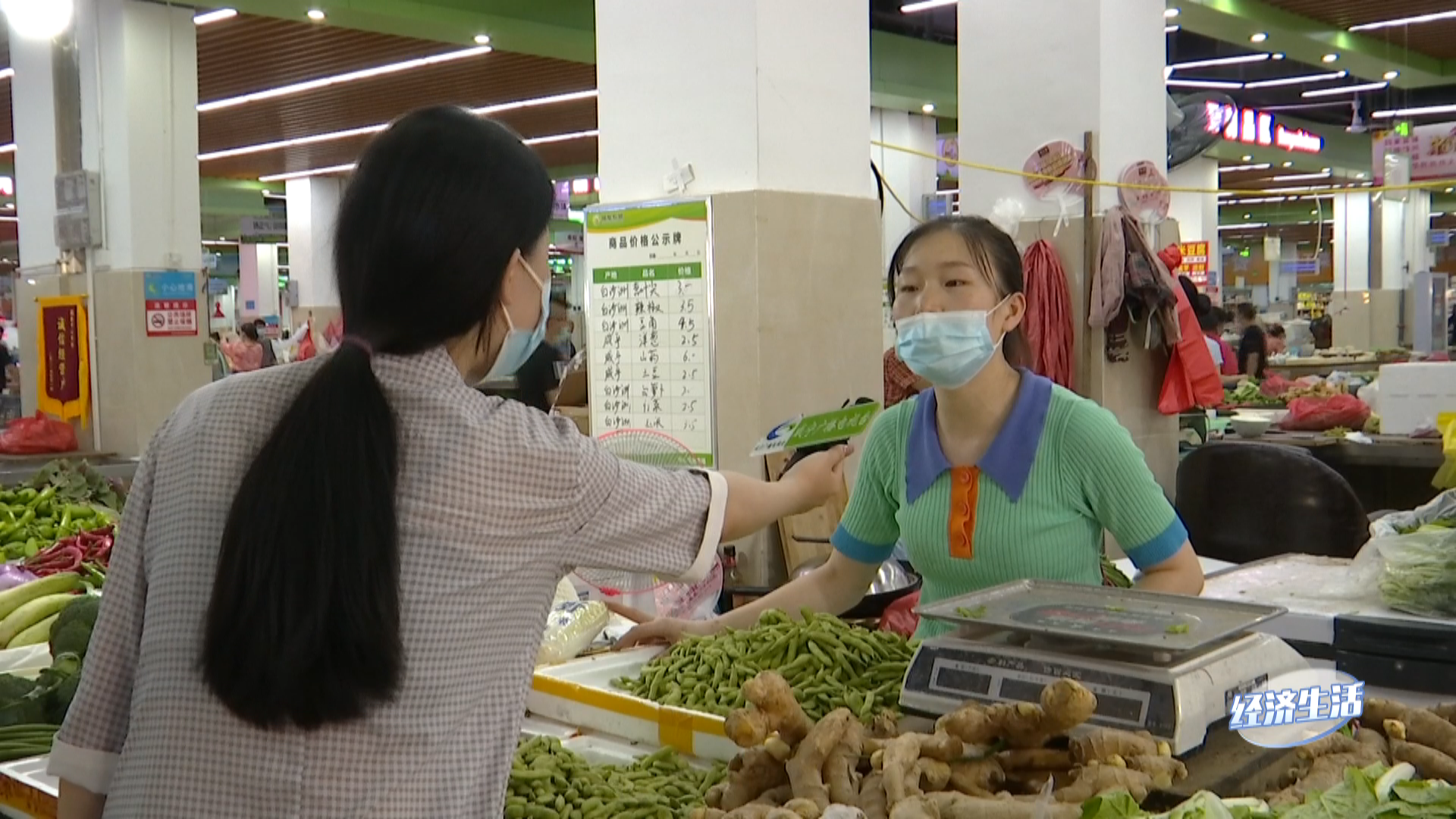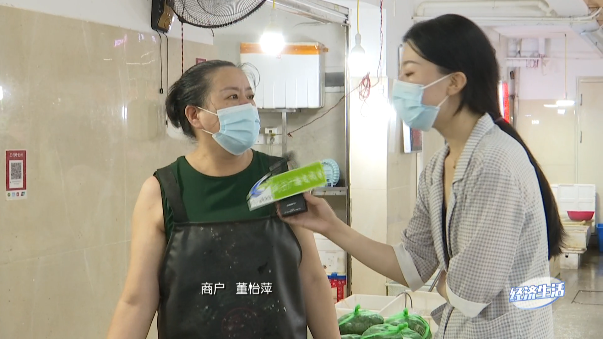 在按要求做好相关疫情防控措施后,佳慧进入到了市场里,通过镜头可以看到,各家商铺的案台上都摆满了各种各样货品。