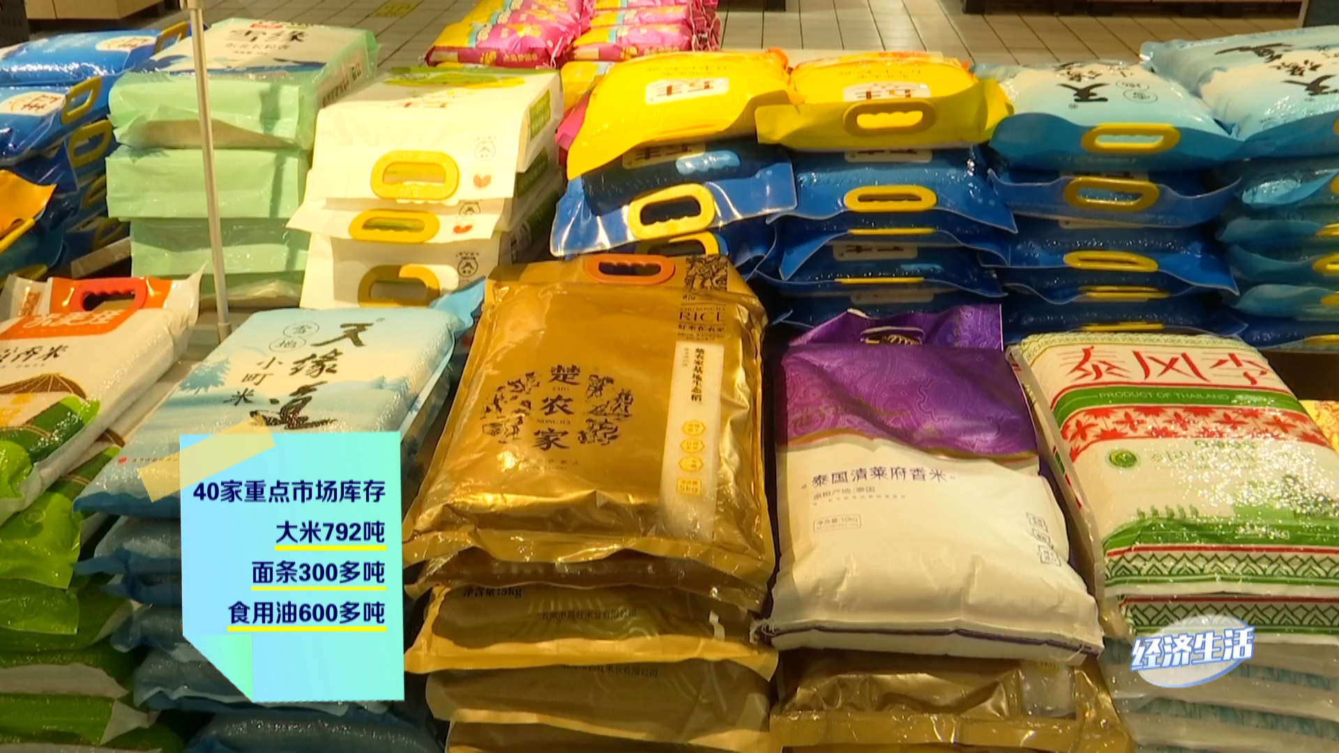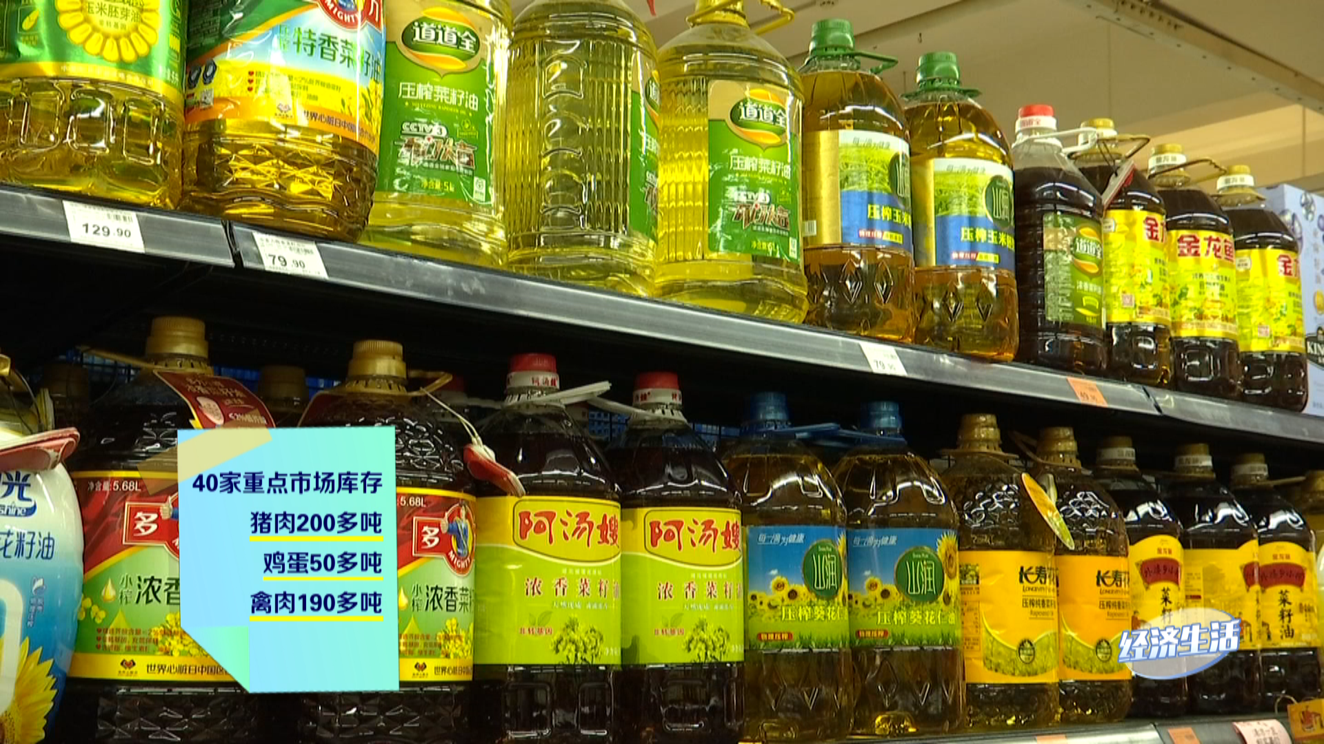 超市粮油米面十分充足,成品油库存超过了40吨,同时还推出了促销活动,超市方面可以承诺将根据销售情况及时补货、不涨价,全力保障市民需要。