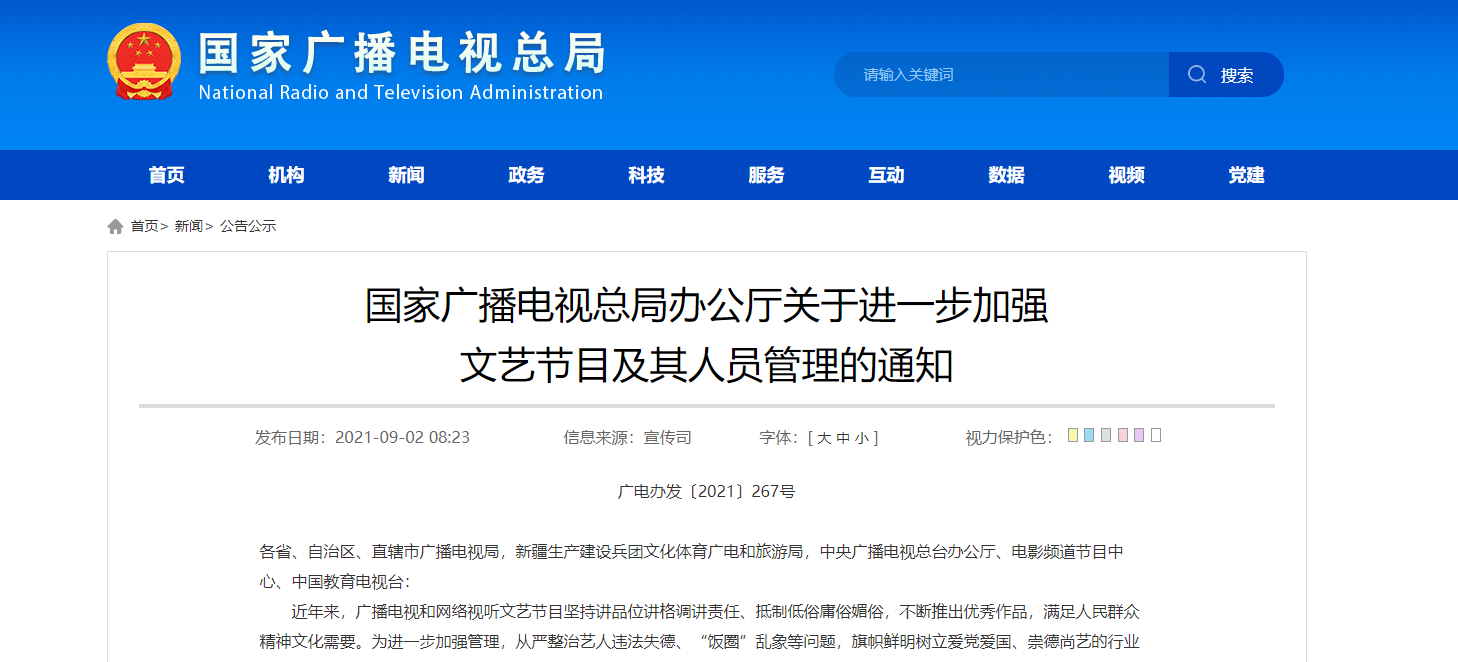 通知要求,树立节目正确审美导向,严格把握演员和嘉宾选用、表演风格、服饰妆容等,坚决杜绝“娘炮”等畸形审美;坚决抵制炒作炫富享乐、绯闻隐私、负面热点、低俗“网红”、无底线审丑等泛娱乐化倾向。严格执行演员和嘉宾片酬规定,严格片酬管理告知承诺制度。倡导鼓励演员和嘉宾担当社会责任,参与公益性节目。严肃惩戒片酬违规、“阴阳合同”、偷逃税行为。