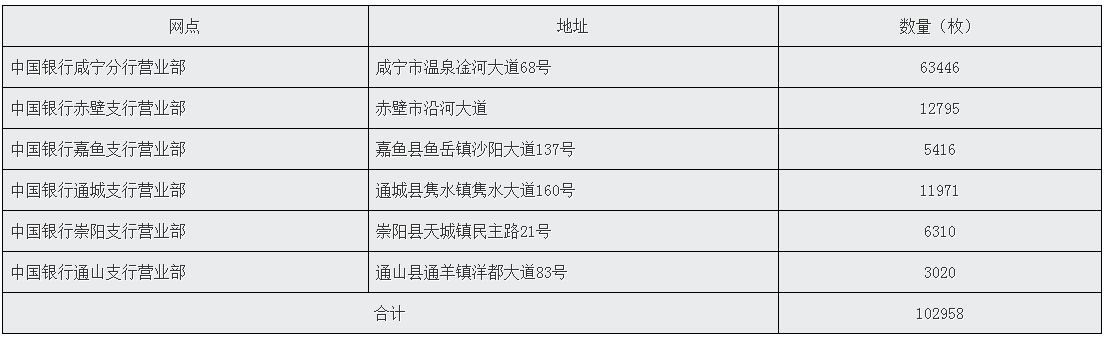 附:咸宁市孙中山币现场发行兑换网点和数量