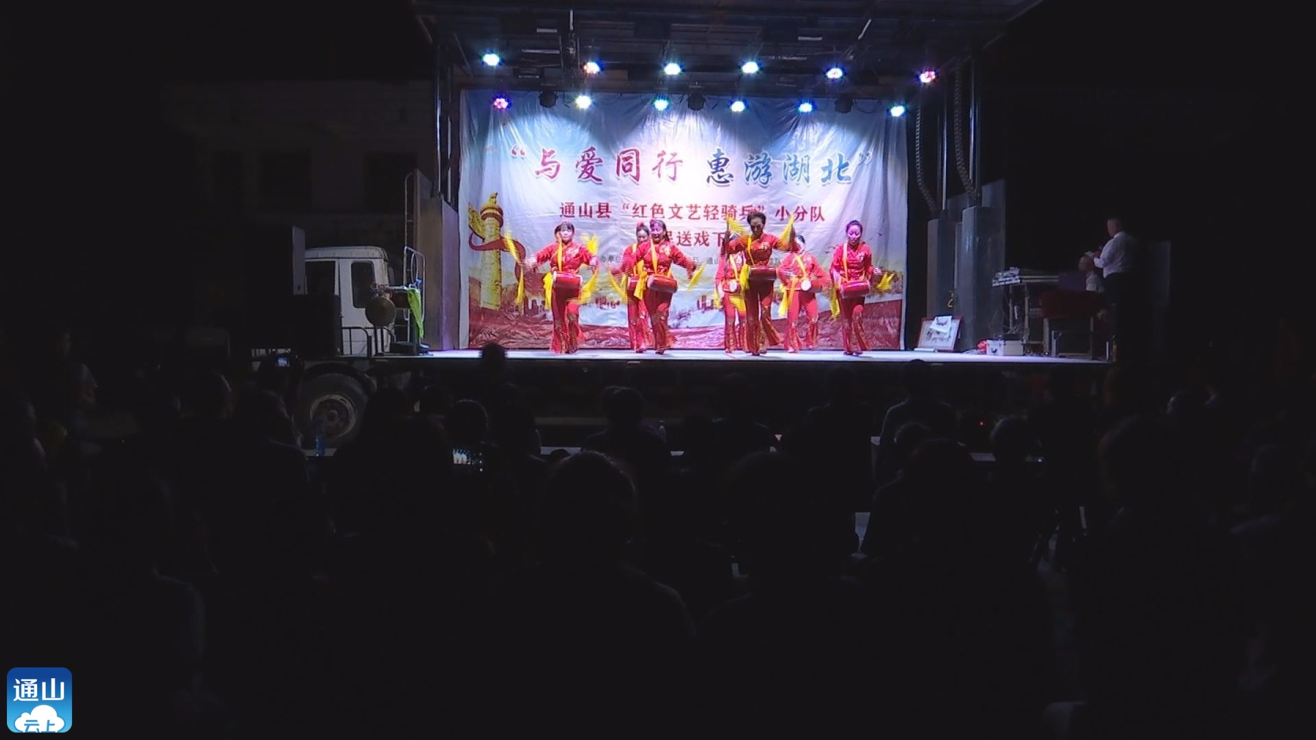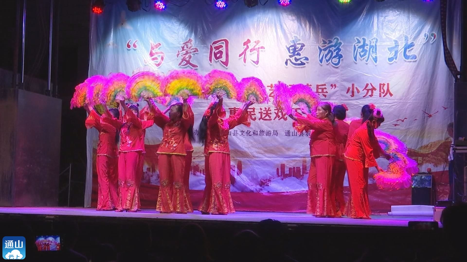 10月4日晚,“与爱同行 惠游湖北”通山县“红色文艺轻骑兵”小分队来到九宫山镇寨头村开展送戏下乡迎国庆活动。