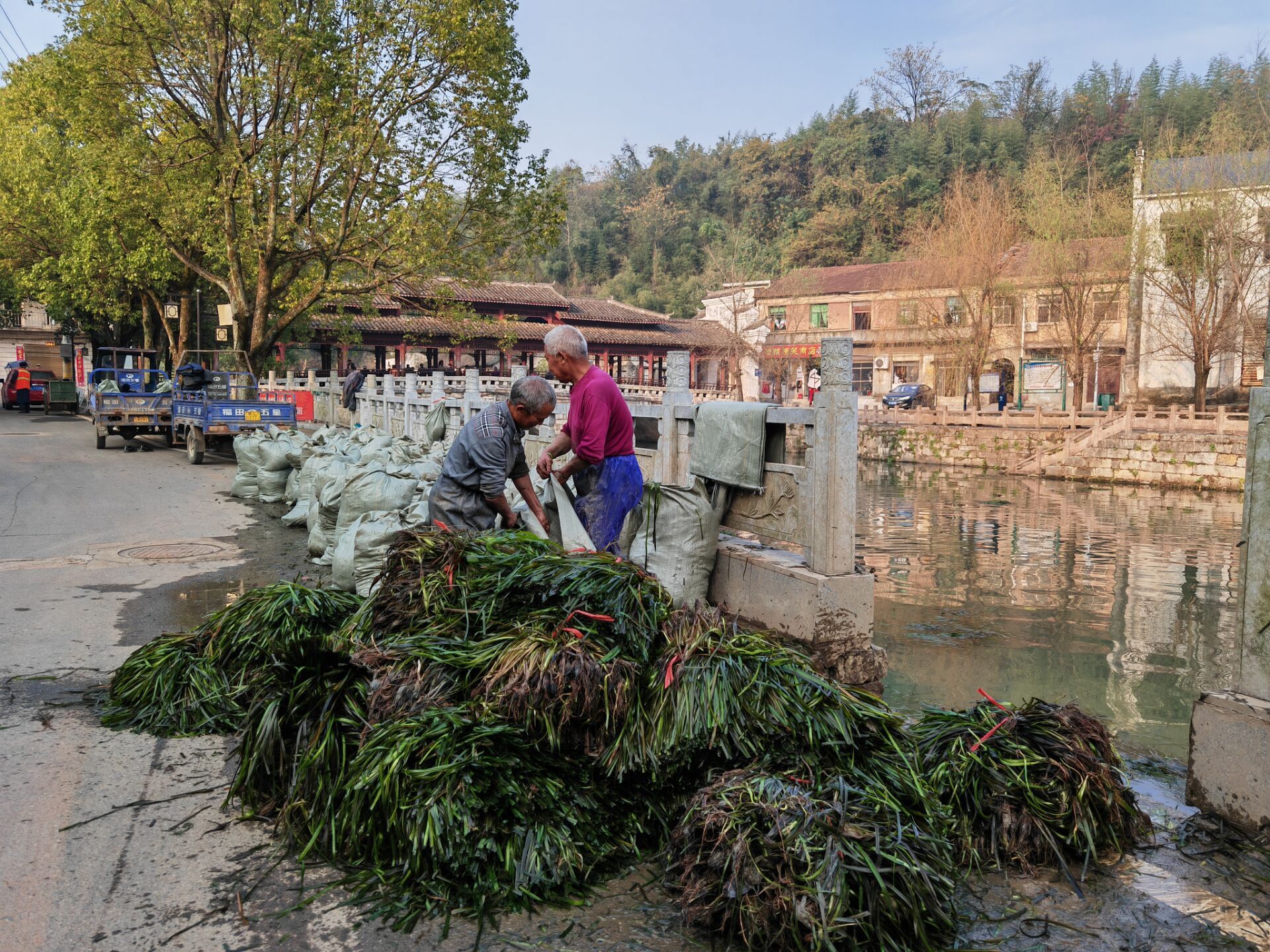 河畔旁,当工人将苦草清理打包完毕后不久,一辆河南省的货车缓缓驶入苦草打包点,打开车门装入已打包好的苦草。据司机介绍,苦草在当地属于宝贝,因为人们对环保要求日益增高,导致苦草的需求量也大。