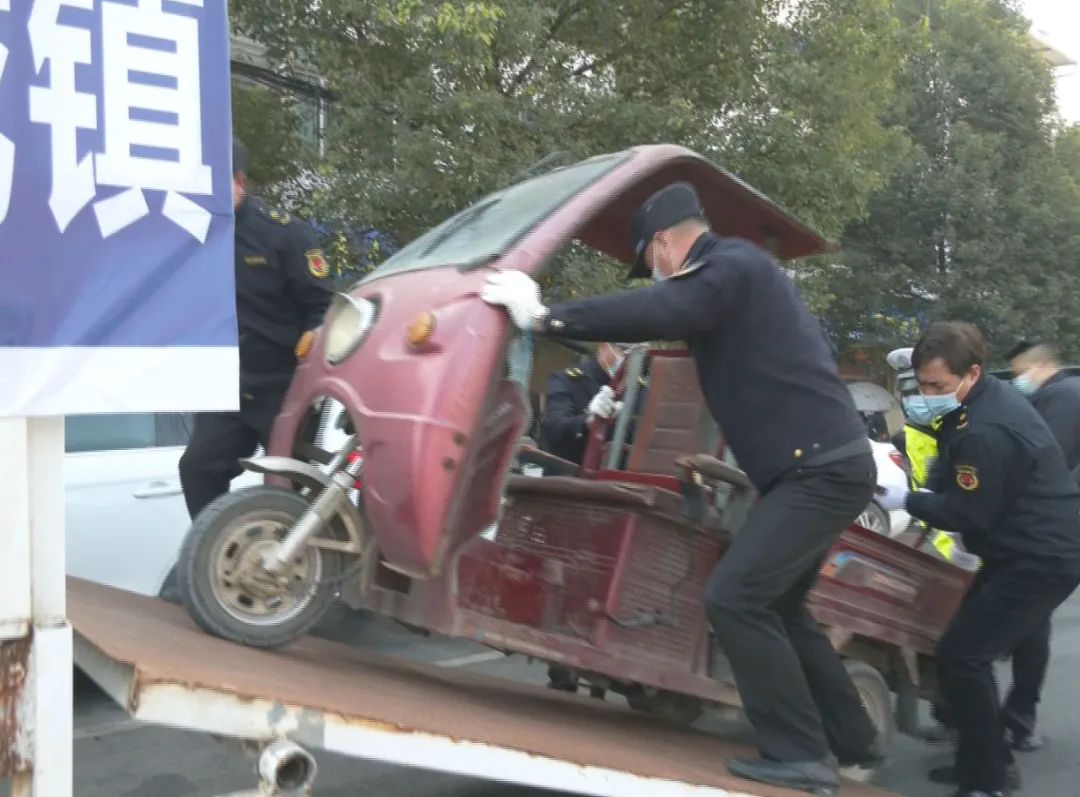 在三角洲附近,执法人员对占用机动车道乱停乱靠的三轮车进行劝离,对无人看管的三轮车依法暂扣。在执法过程中,通过现场严格执法,同时借助车载音响、宣传横幅进行交通文明宣传,提高司机遵守交通秩序的自觉性,提升市民交通文明素质,营造浓厚的交通秩序整治氛围。