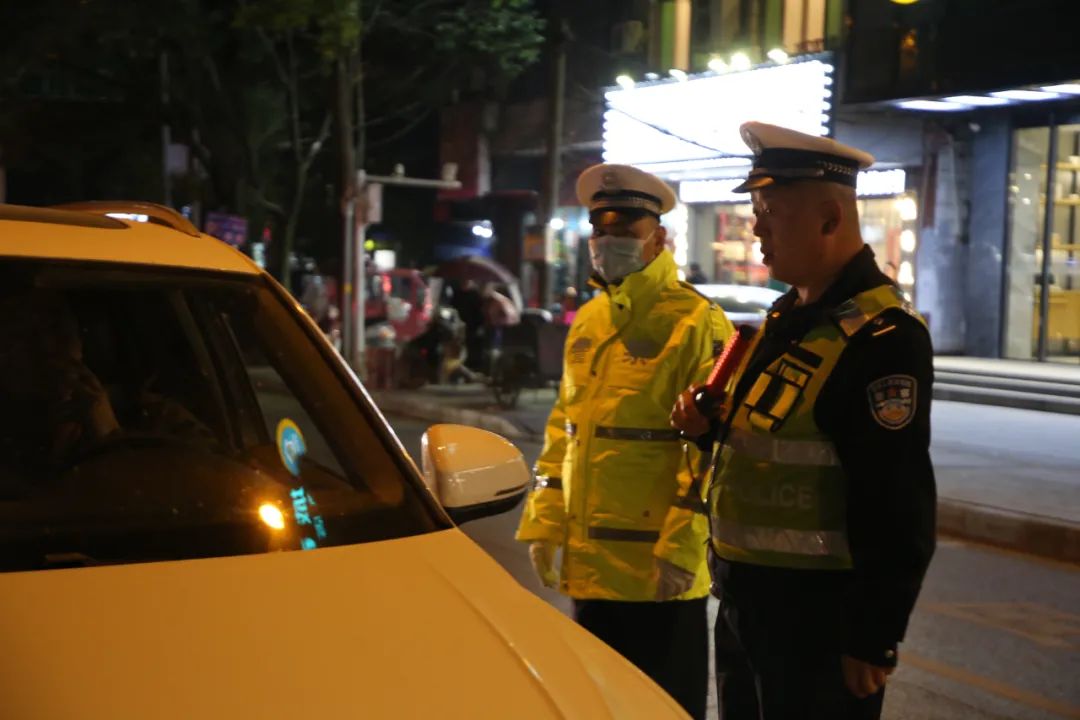 夜间,执法人员开展整治酒驾醉驾夜查行动,严厉打击酒驾醉驾等交通违法行为。行动期间,执法人员在城区各个重要路口逐一检查过往车辆驾驶人员,重点检查酒驾、醉驾、无证驾驶、涉牌涉证、超员等交通违法行为。