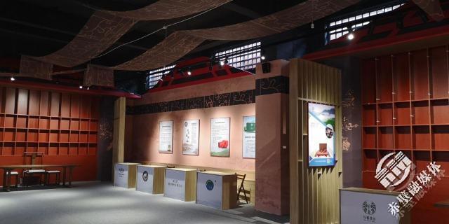 馆内着重展示湖北五大名茶,并设有饮茶区用以咨询洽谈,周围区域则综合展示了45种其他品类的茶叶。