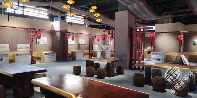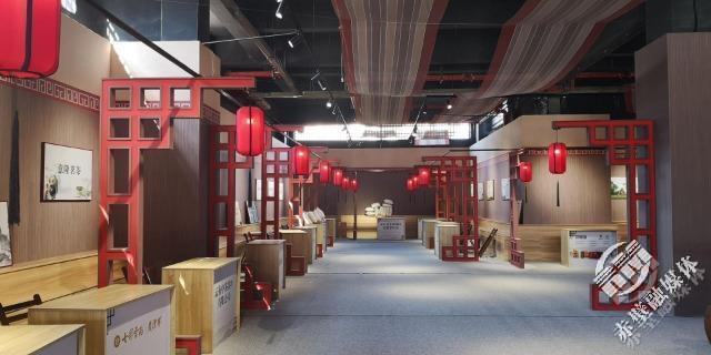 馆内以古朴大气的中国风为设计风格,馆内综合展示30家黑茶品牌,主要设置了共享饮茶区,融合灯笼、红幔、木质屏风等元素,共同营造出欢聚融洽的氛围。