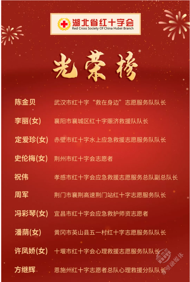 为深入贯彻落实习近平总书记关于红十字事业和志愿服务的重要指示精神,进一步推进红十字志愿服务工作制度化常态化专业化,充分发挥志愿者在红十字工作中的主体作用,激发志愿者参与和支持红十字事业的积极性,形成促进中国特色红十字事业发展的合力,总会在全国开展了推选宣传红十字志愿服务先进典型活动。经过各级红十字会择优推荐、集中评审、网上公示,湖北省共计10名优秀红十字志愿者被推选为全国红十字志愿服务先进典型。