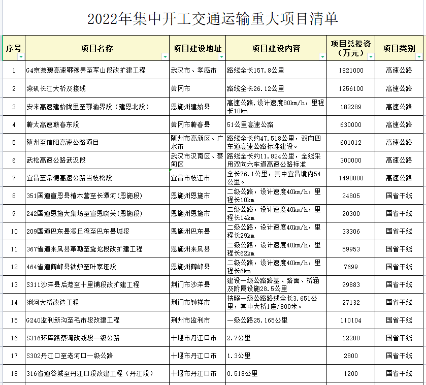 14日下午,湖北举行交通运输重大项目集中开工活动,总投资847亿元,包含高速公路、国省干线公路、四好农村路、港航及物流场站项目。
