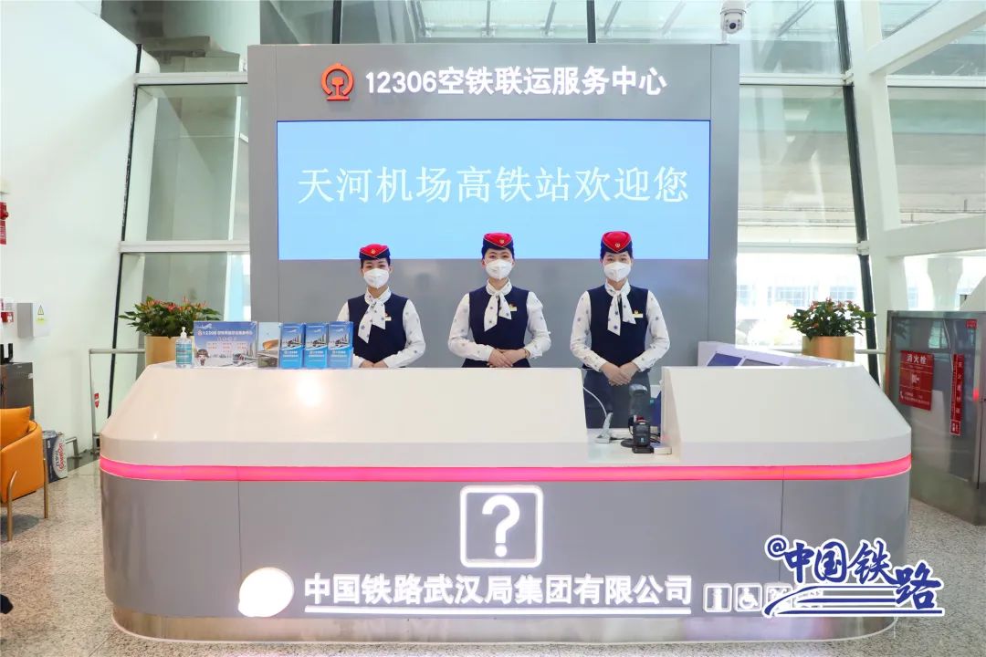 此前,中国铁路武汉局集团有限公司和武汉天河机场合作,在汉口火车站武孝城际候车区内设立了空铁联运信息共享显示屏,并开行了火车站至机场间的动车,实现了空铁联运和便捷换乘等服务。为进一步推进客运服务升级,武铁和湖北机场集团有限公司又联合推出了以汉口火车站、天河机场高铁站和武汉天河机场为核心枢纽的空铁联运服务品牌——12306空铁联运服务中心。