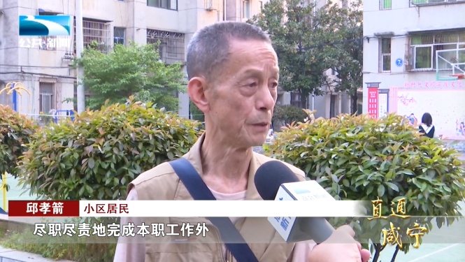 咸宁市咸安区住房和城乡建设局红色物业专班工作人员 彭方洋:“宏宇小区通过党建引领,挖掘热心退休老干部,实行了居民自治,小区居民切实得到了获得感、幸福感,此经验在全区值得进行推广和借鉴。”