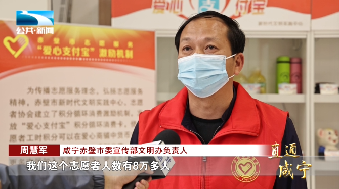 咸宁赤壁市委宣传部文明办负责人 周慧军:“我们这个志愿者人数有8万多人,产生的积分突破了100万积分,相当于是要投入100万块钱。”
