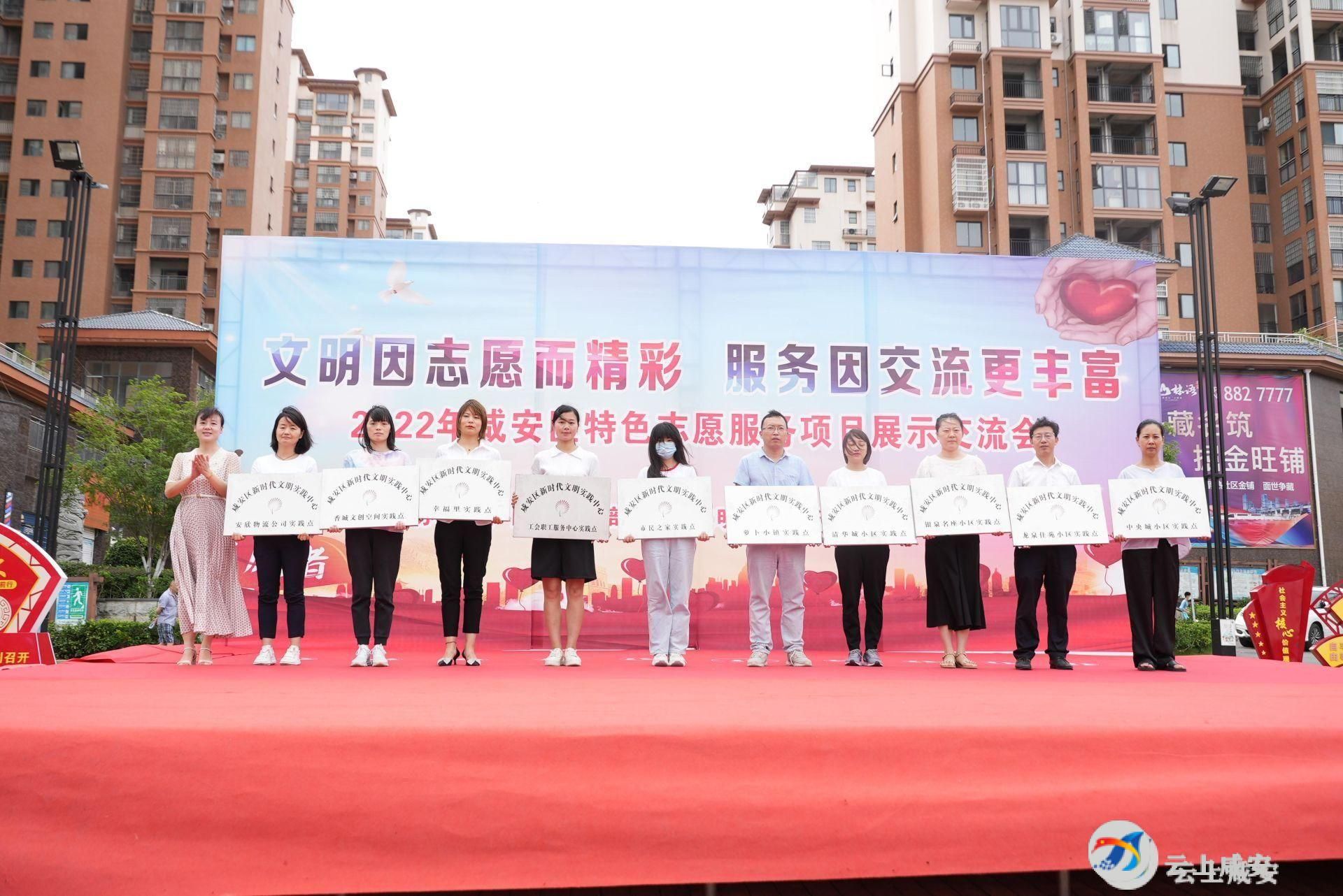 云上咸宁报道(记者 蒋旗 咸安融媒体记者 伍伟)7月26日上午,2022年咸安区志愿服务展示交流暨新时代文明实践点授牌活动在永安街道文笔路社区畔山林语小区举行。
