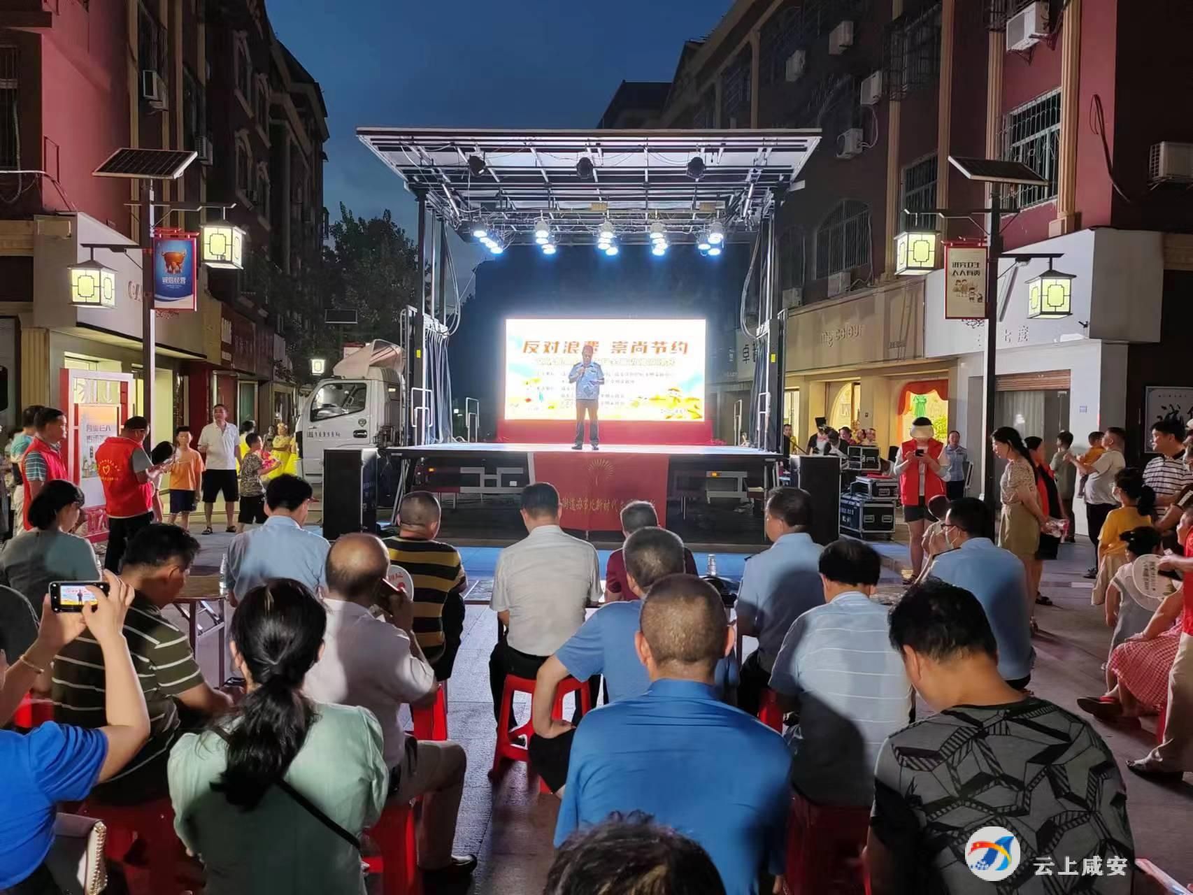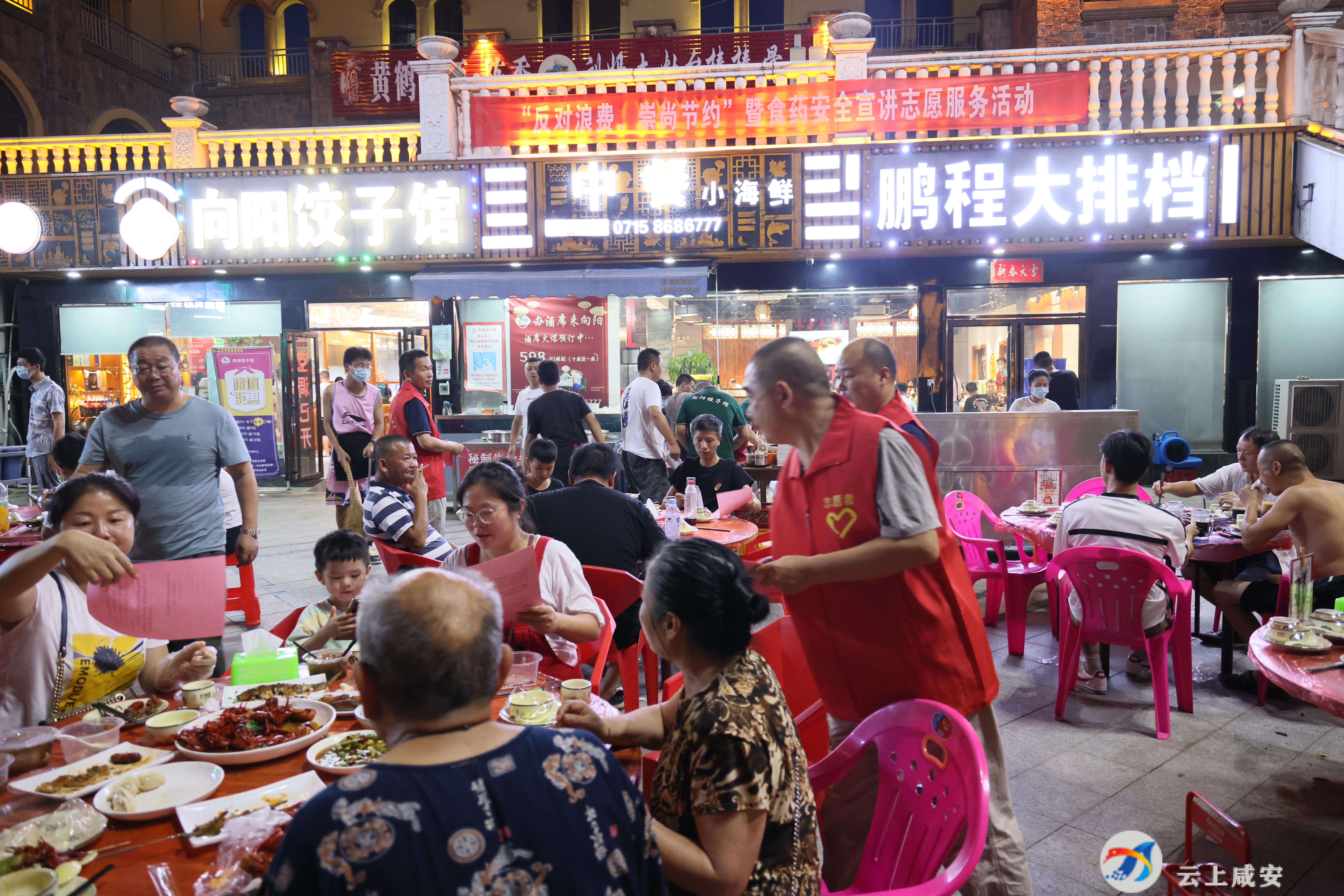 云上咸宁报道(记者 李卫东 咸安区融媒体记者 王媛媛 通讯员 章和开)“一粥一饭当思来处不易,半丝半缕恒念物力维艰。”反对浪费,崇尚节约是中华民族优良品德。7月15日晚,咸安区市场监督管理局、永安街道办事处在福宁步行街主会场和海德公馆、明珠广场、二电机三处夜市分会场联合举办“反对浪费,崇尚节约”文明餐桌清凉晚会暨食药安全宣讲志愿服务活动。