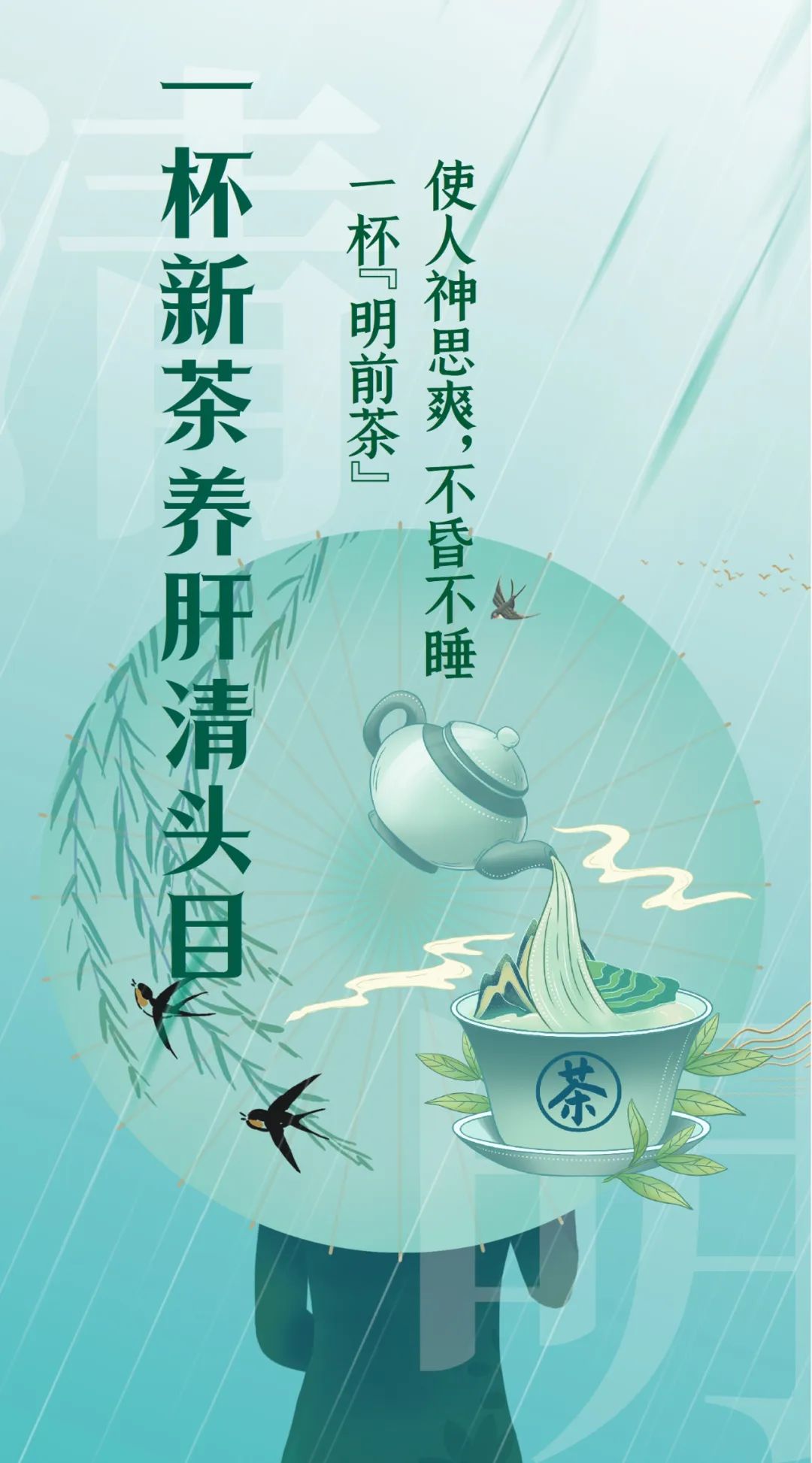 清明节后气候变暖,易让人身心疲惫,昏昏欲睡,李时珍推崇在清明时期饮一杯“明前茶”,可使人神思爽,不昏不睡。“明前茶”是指每年清明前采摘加工的新茶,有养肝清头目、化痰除烦渴的功效。