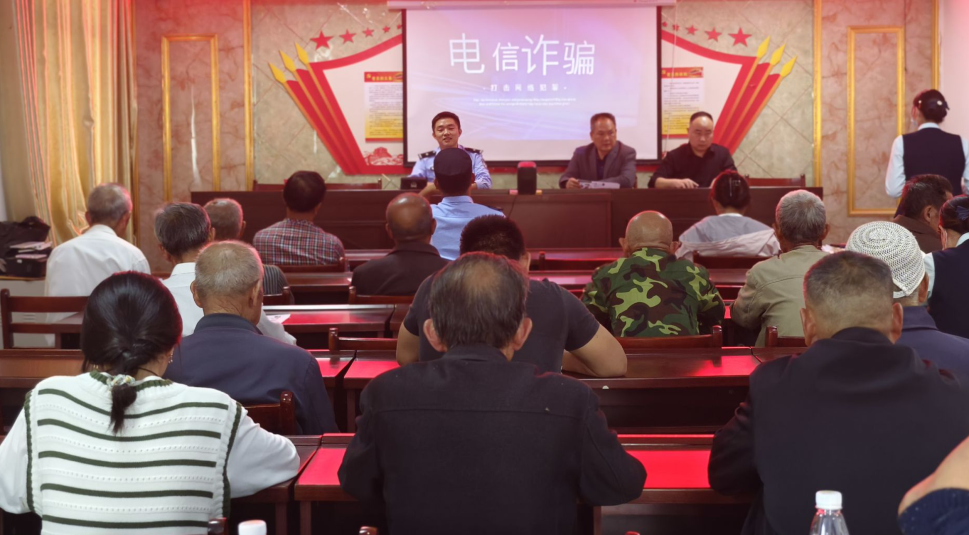 此外,在进村宣传的过程中,民警与村委会工作人员还在醒目位置悬挂横幅、张贴海报,进村入户发放宣传资料,现场面对面向群众讲解了电信诈骗常见类型、惯用伎俩、防范技巧以及被骗后的补救措施,切实让预防电信网络诈骗知识入脑入心。