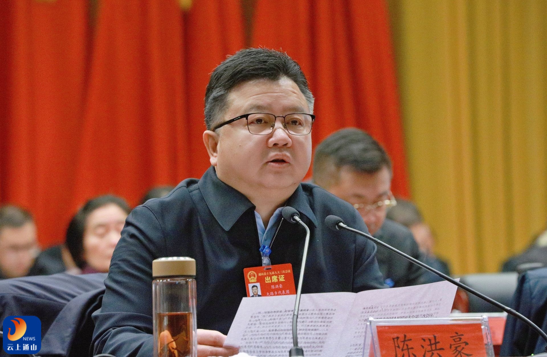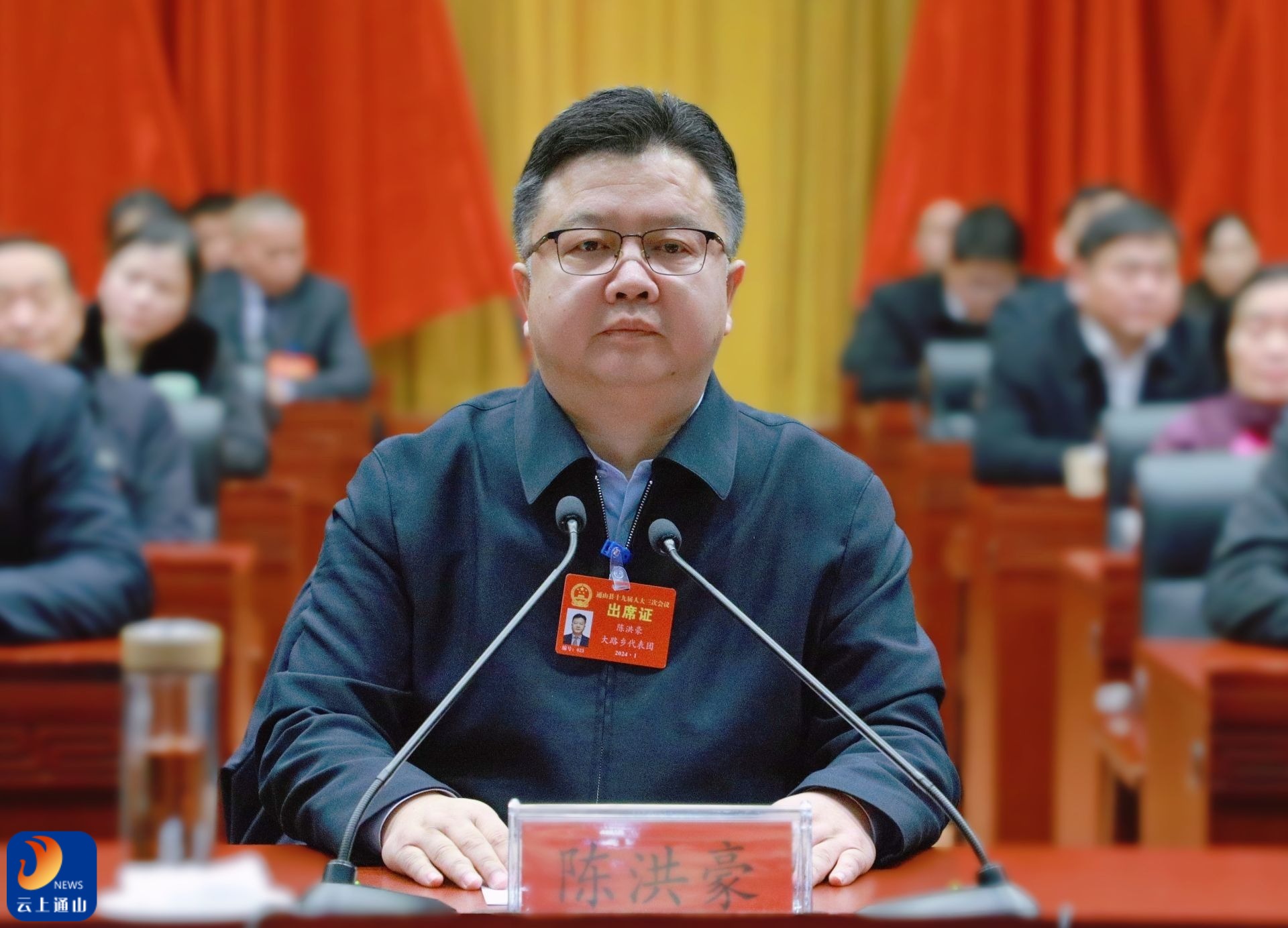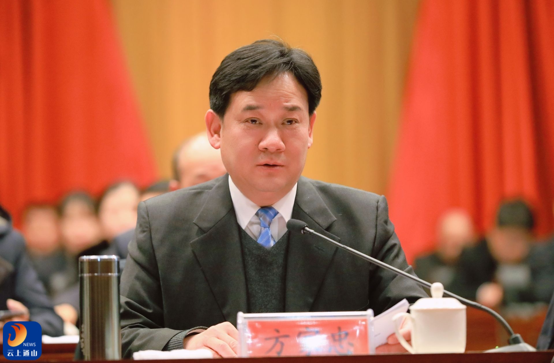 ▲通山县委书记陈洪豪出席会议。