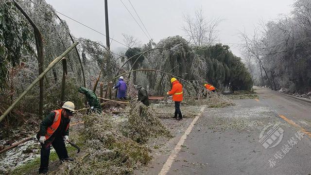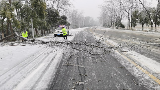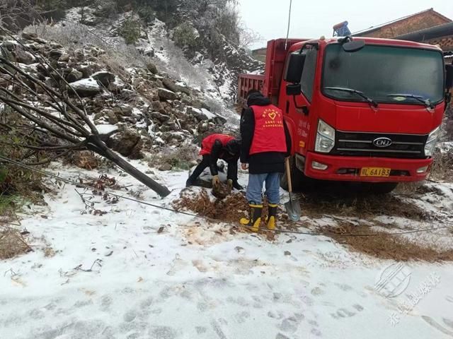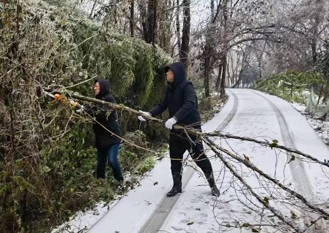 赤壁市官塘驿林场组织各支部党员群众清理积雪与路障,确保交通行路安全。(田葵芳)