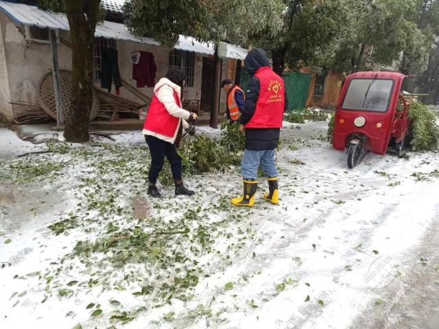 赤壁市锁石岭社区组织全体工作人员、居民志愿者,分组安排在社区全域各主干道、背街小巷清理被冰雪压断的树枝,保障居民出行安全,同时安排网格员入户独居老人,高龄老人,特困家庭走访查看情况排查安全隐患及收集居民需求(魏童燕)