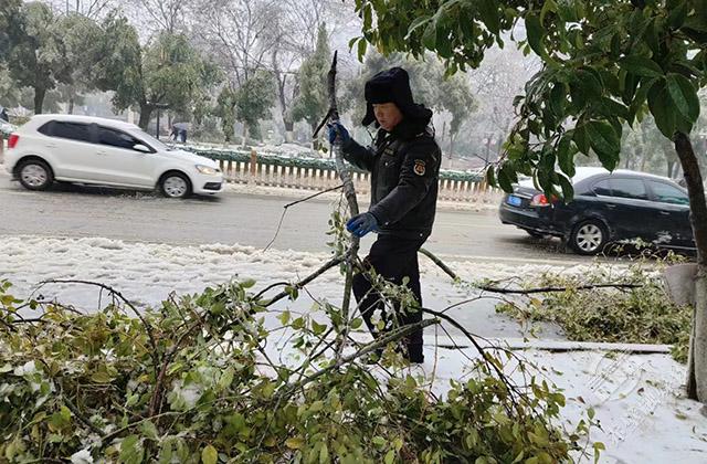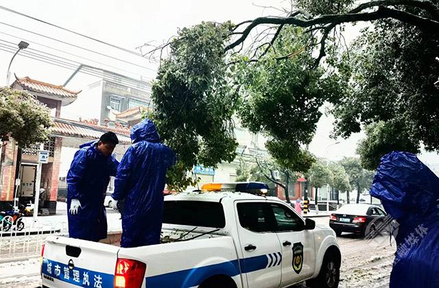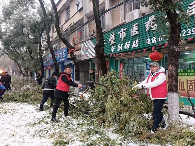 赤壁市城管执法局组织全体党员干部,分批次、分区域,对社区、主干道等重点区域的残枝断树、积雪、结冰路段进行全面清理,全力保障居民出行安全!(徐邦)