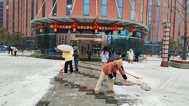 赤壁市文化和旅游局组织全体职工及系统各单位开展清除积雪行动,清扫图书馆、博物馆等区域积雪和残枝,及时消除安全隐患,为市民出行保驾护航。(曾冰)