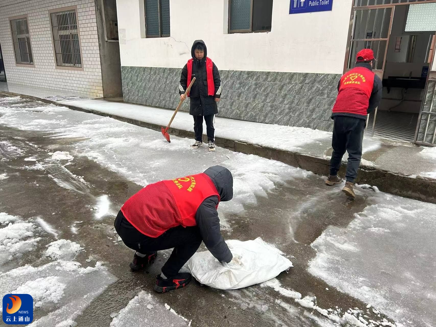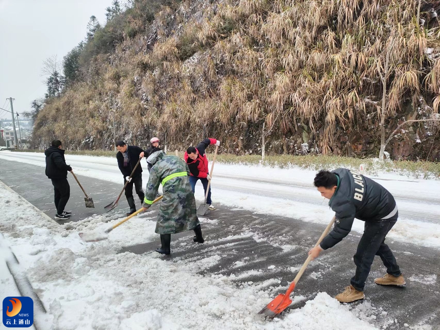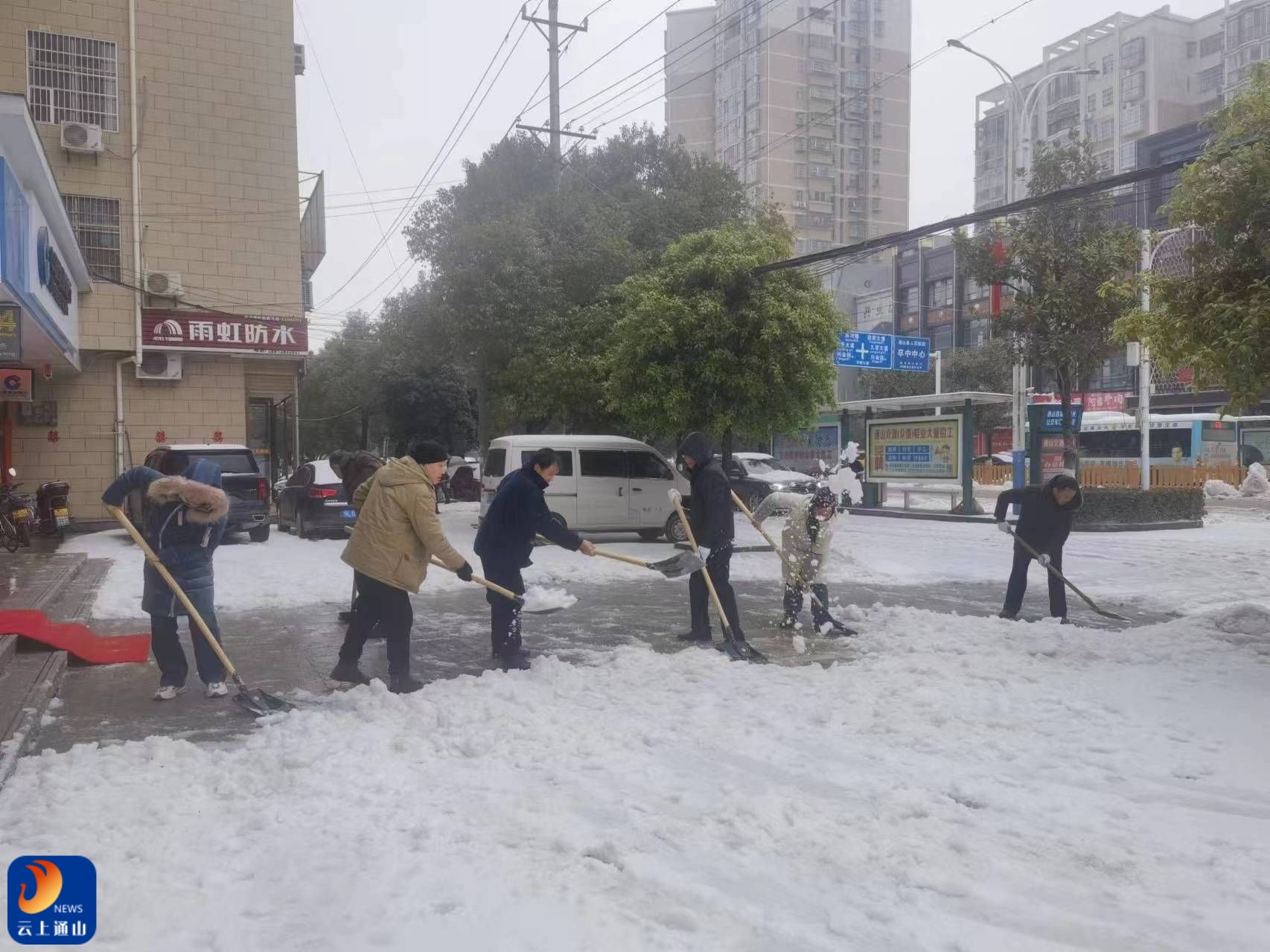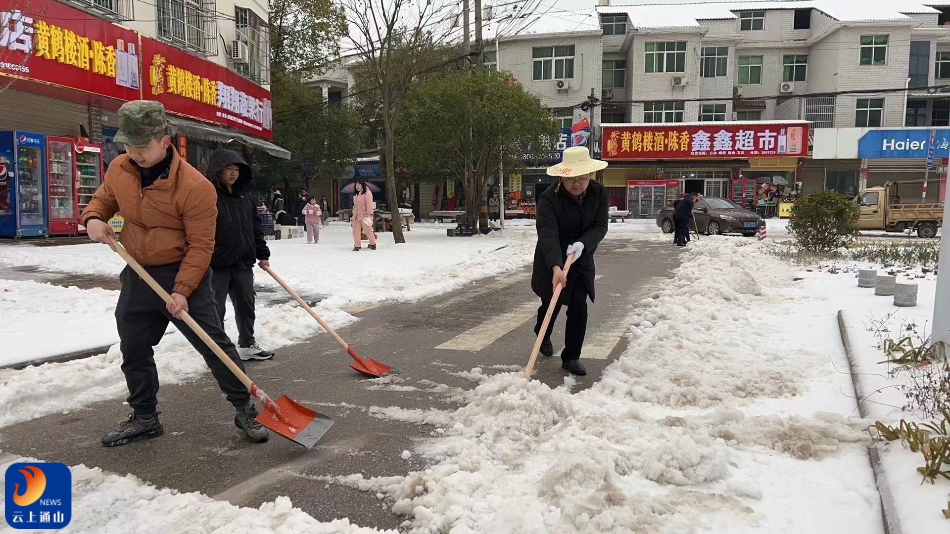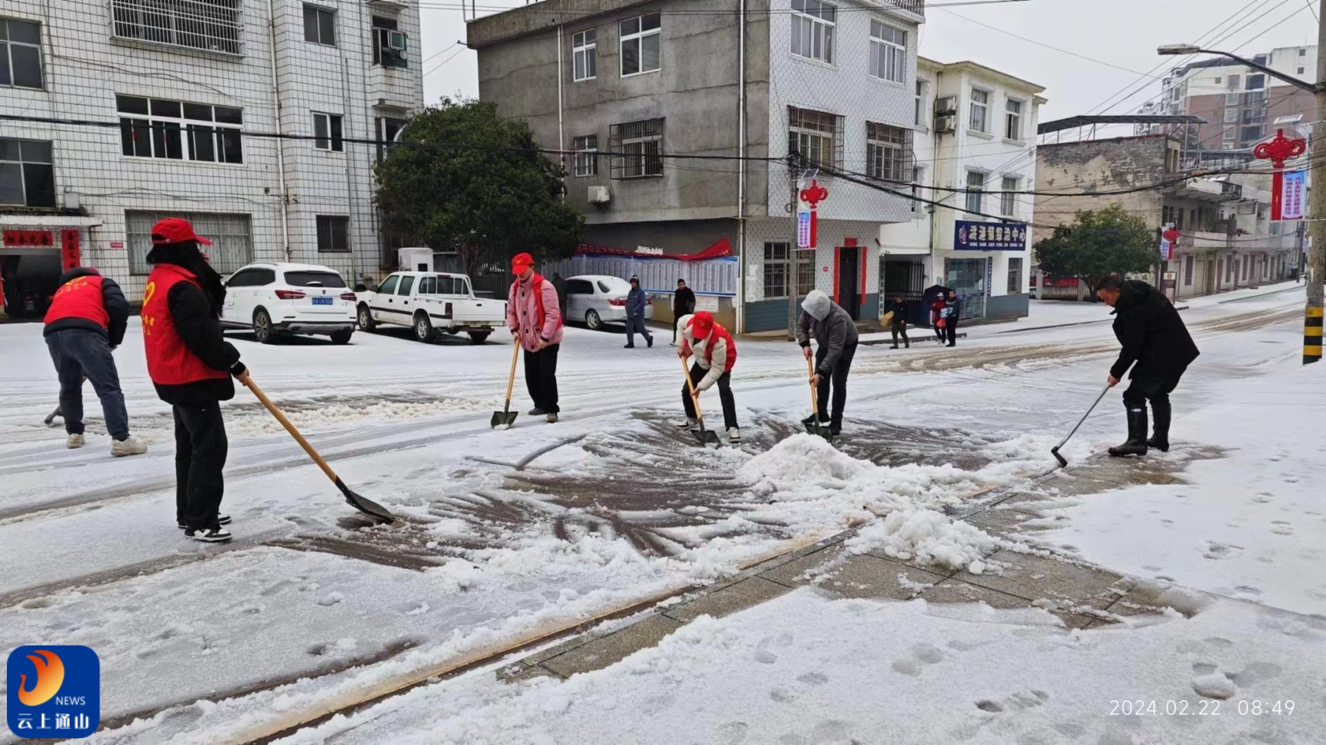 通山县通羊镇各村(社区)以动制“冻”,积极动员党员干部,志愿者清除道路积雪。