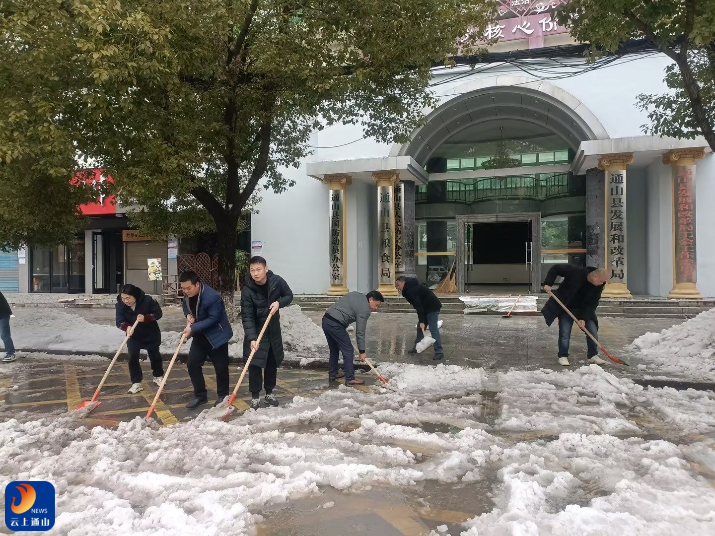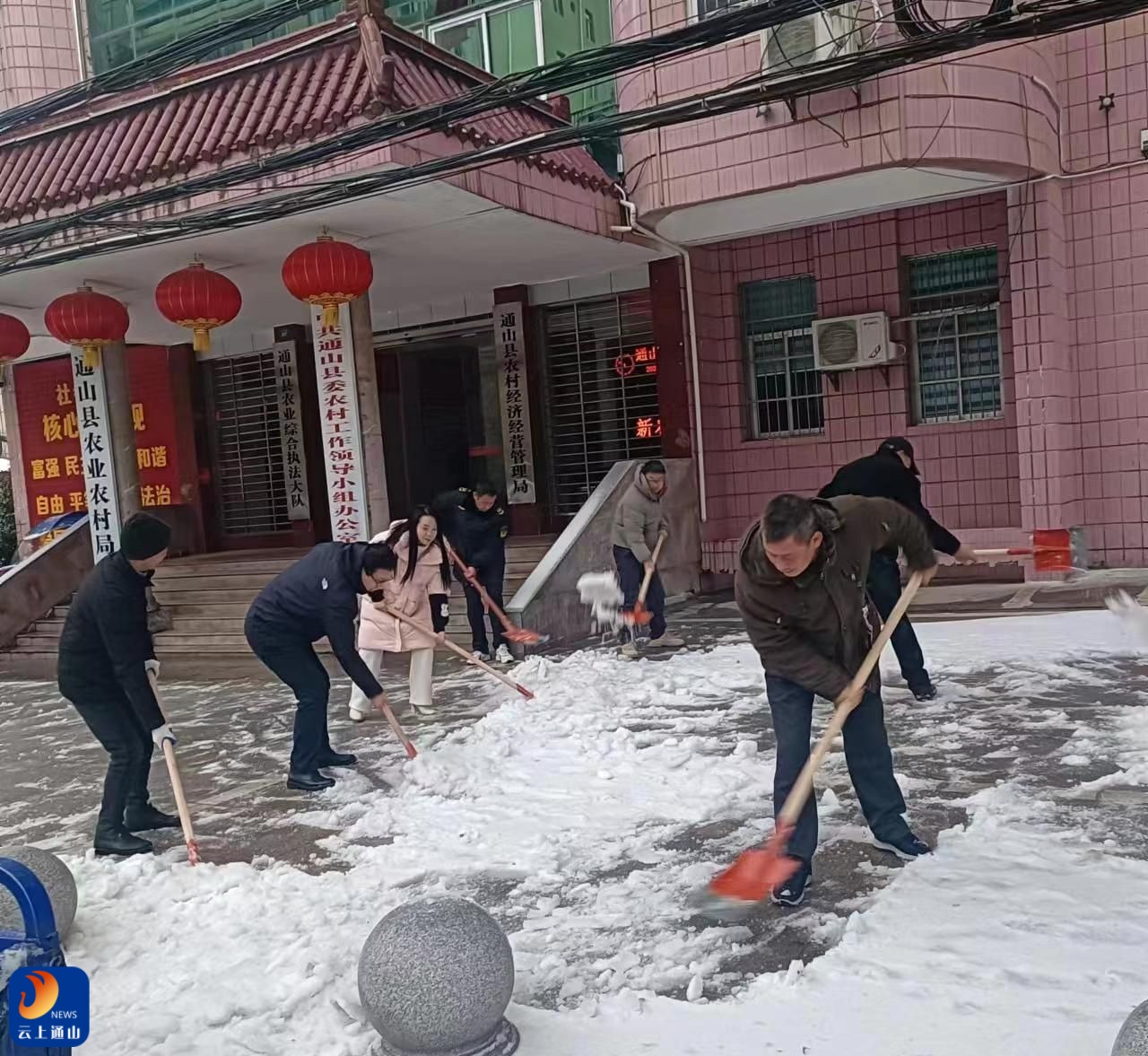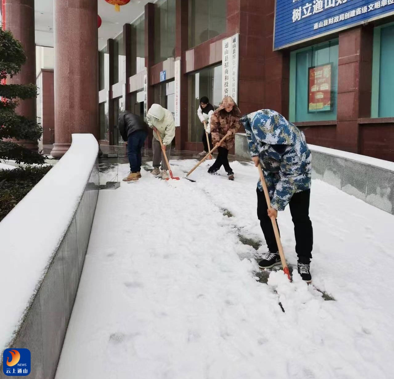 通山县发改局组织干部职工做好门前四包冰冻除雪工作。