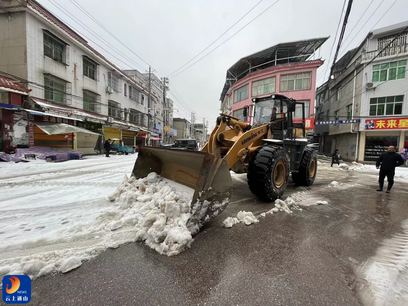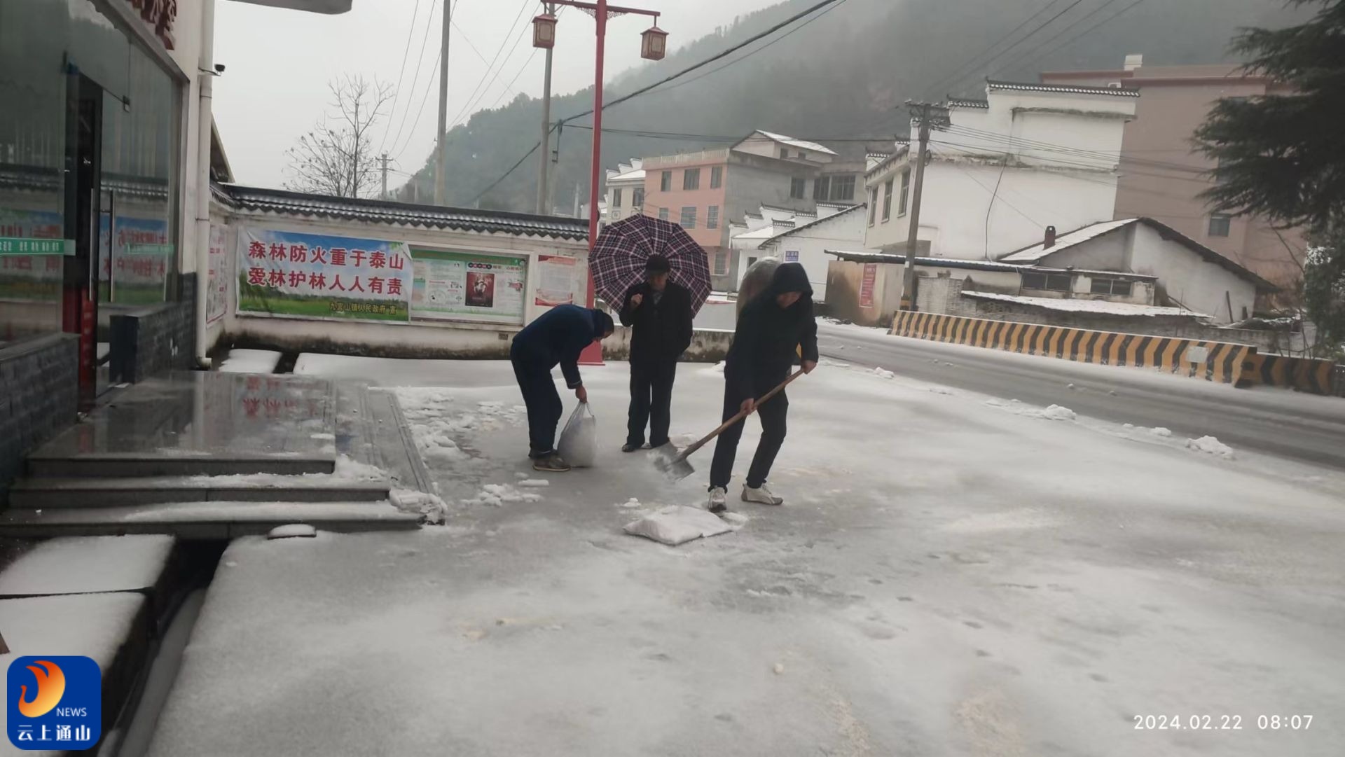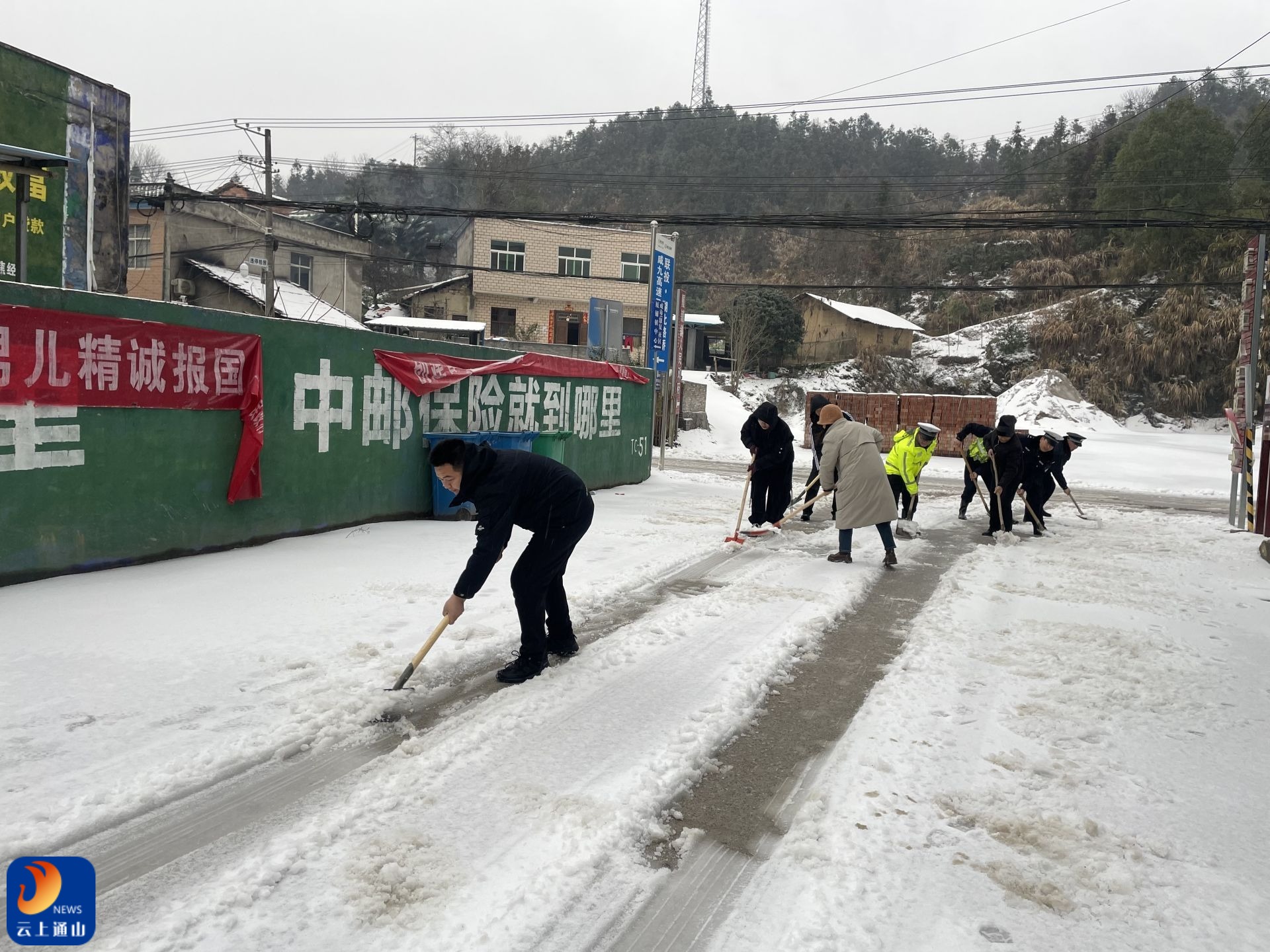通山县慈口乡党员干部在慈口主干道进行清扫除雪。