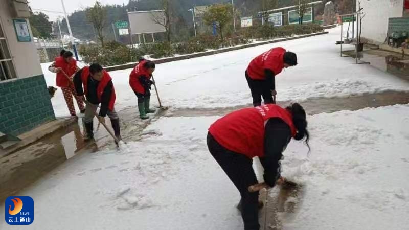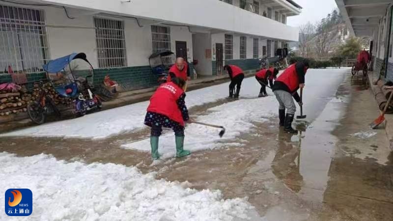 通山县闯王镇组织组织干部群众进行积雪清除。