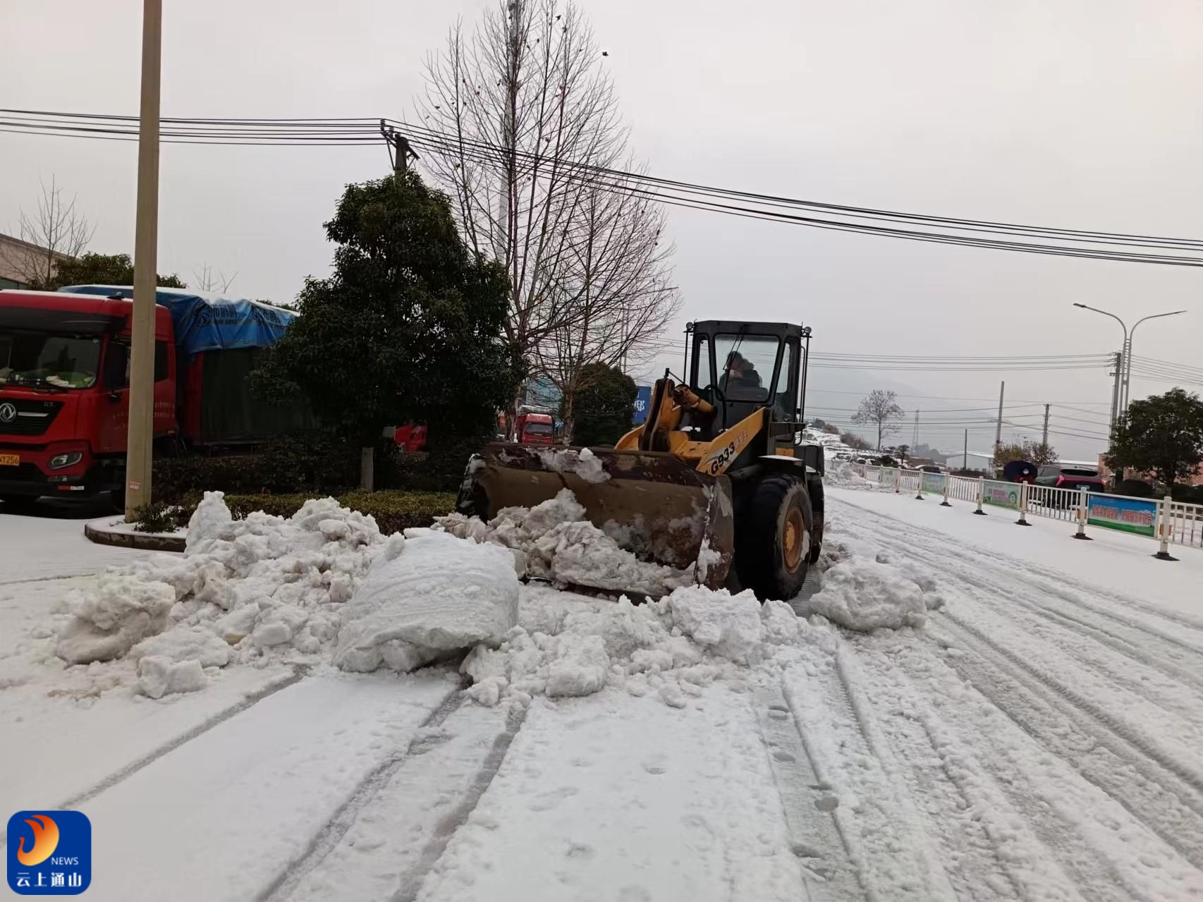 通山县应急局全员出动,清除门前道路积雪,调派铲车清除迎宾大道积雪。
