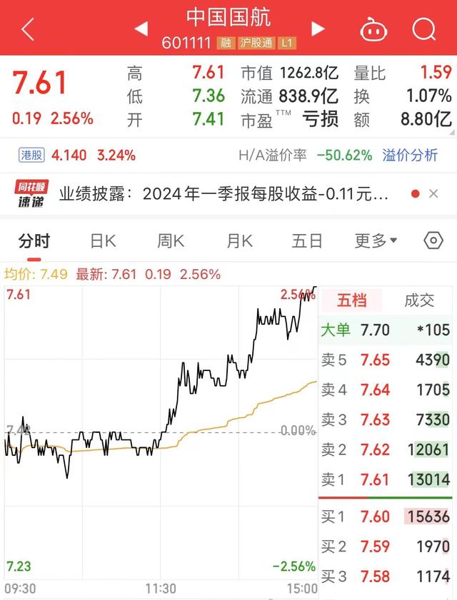 截至26日a股收盘,中国国航股价上涨2.56%。