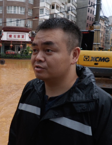 城管执法人员迅速行动,深入到受灾严重的区域,对该区域商户和群众开展疏散和提醒工作。