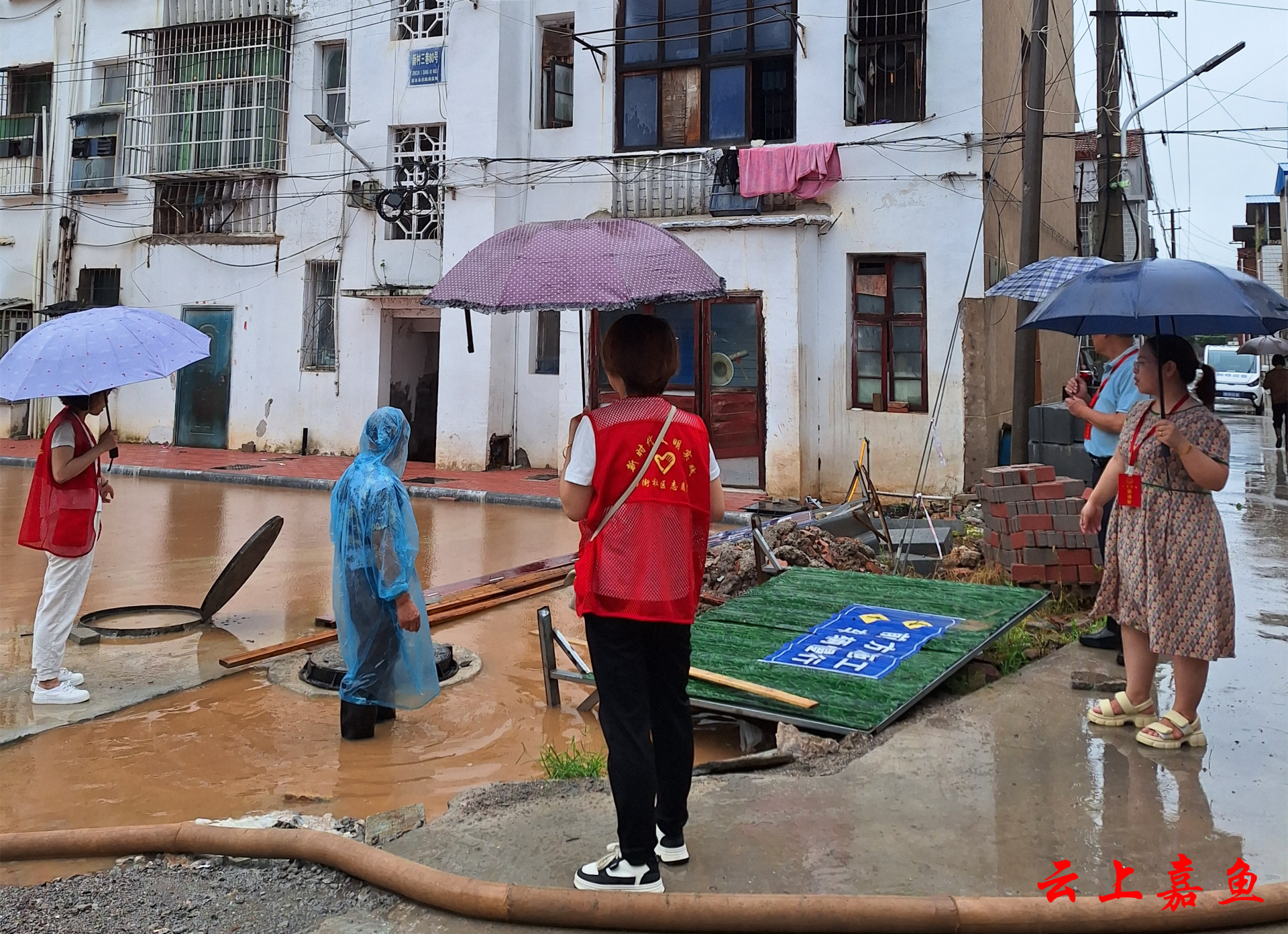 在鱼岳镇西街社区,代表们来到辖区老旧小区实地察看。代表们顶着呼啸狂风、冒着倾盆大雨,深入一线,涉水前行,逐家逐户排查。他们及时了解群众吃饭、饮水、住房情况和农作物情况,耐心细致地进行心理安抚,与群众共渡难关。