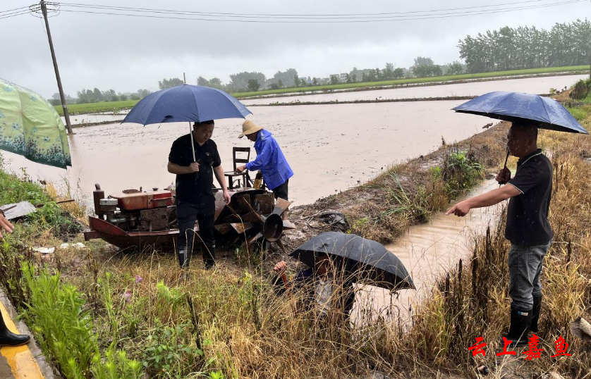 在东村村五福堂、南河头、均乐堂片,镇人大代表彭友兵忙着动员群众开展生产自救,动用机械清沟挖路,对联片、积水较浅的农田,组织抽水机械等对排水不畅的渠道进行清挖修复。眼下是4000亩水稻生长抽穗的关键时期,需要密切关注天气避免遭受暴雨恶劣天气的影响,保证水稻颖果的灌浆质量,确保粮食安全。