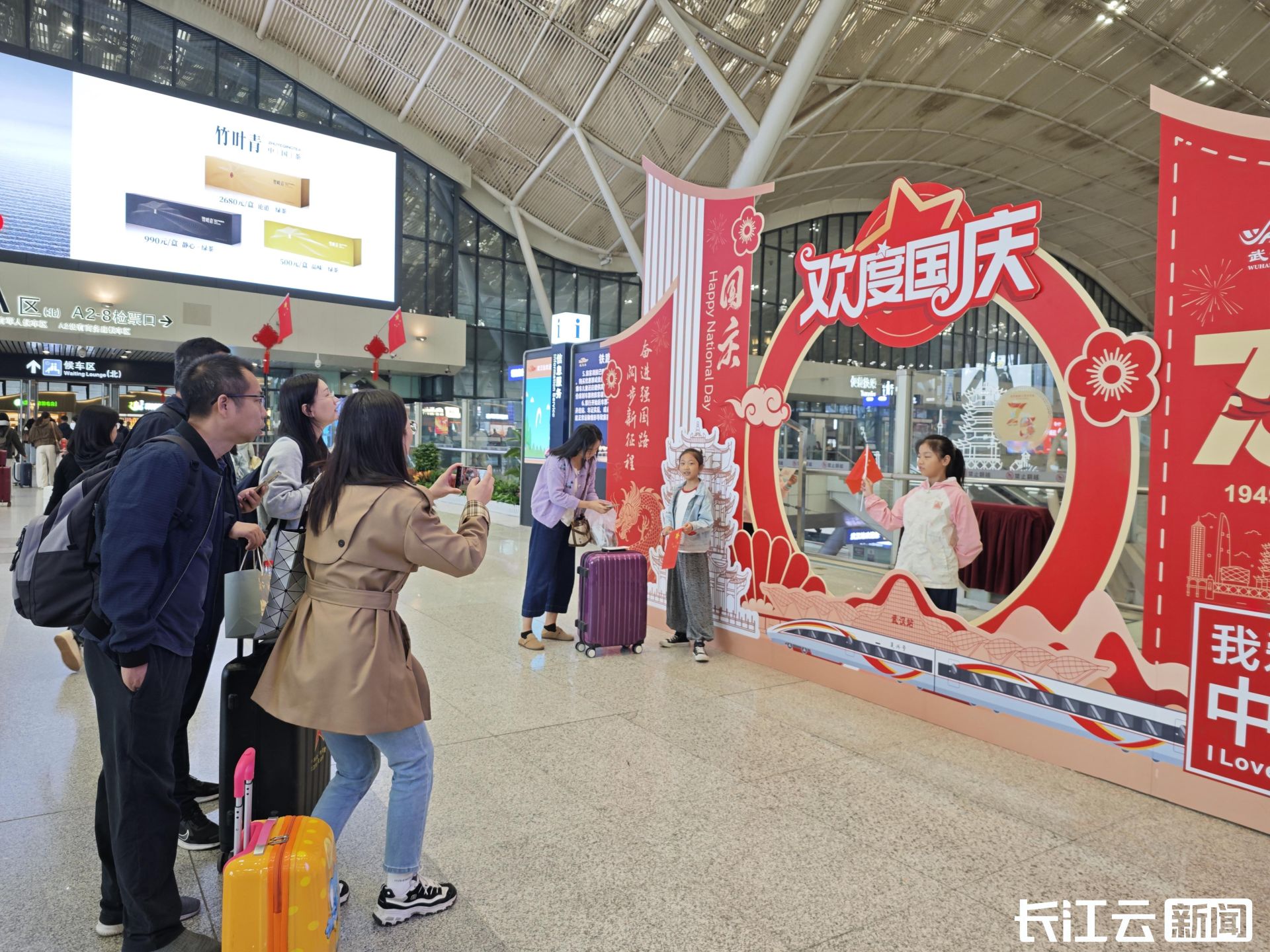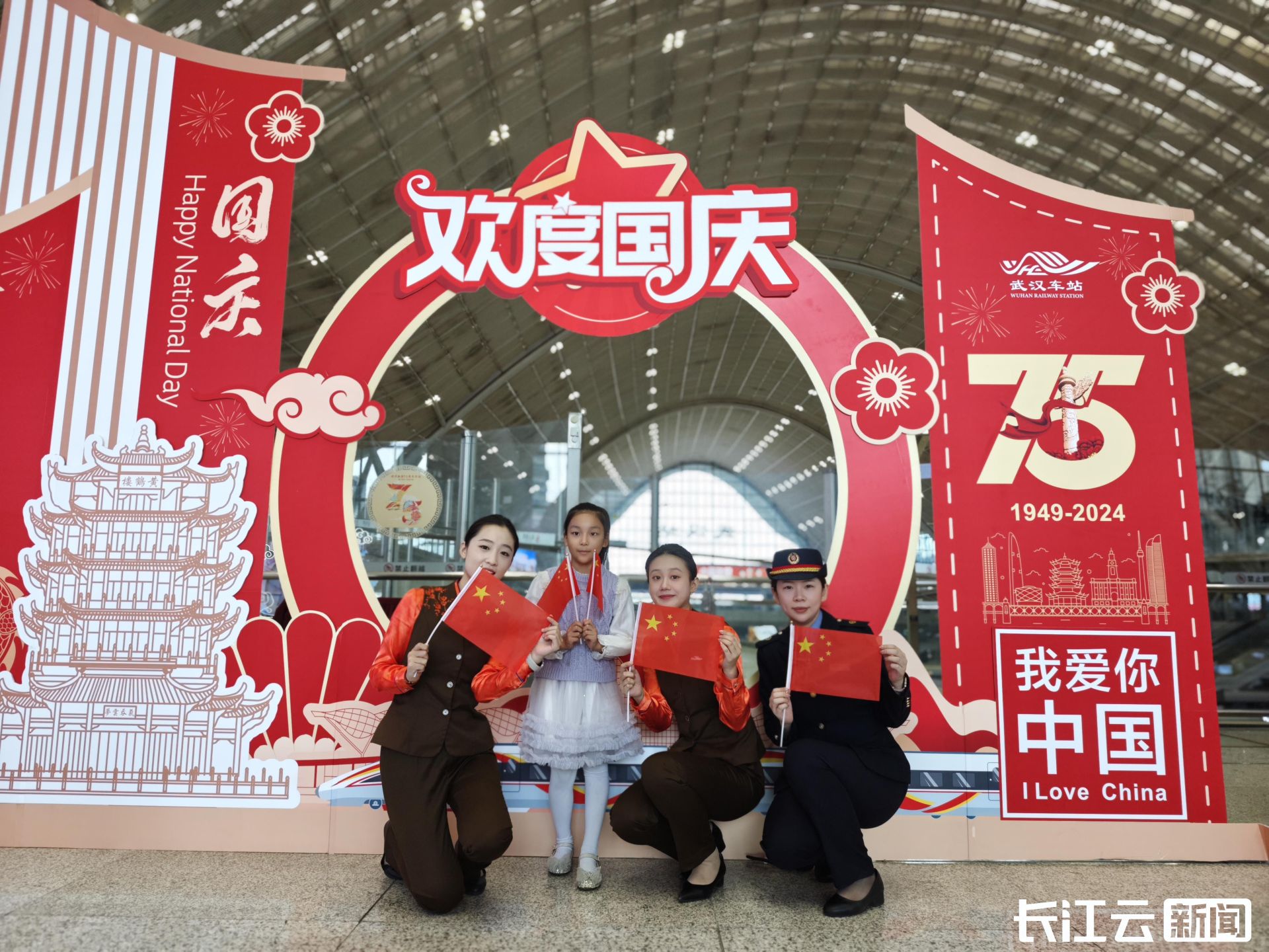 为庆祝中华人民共和国成立75周年,武汉火车站精心策划了“喜迎盛世华诞,护您平安出行”主题打卡拍照活动,以独特的方式向伟大祖国献上诚挚的祝福。