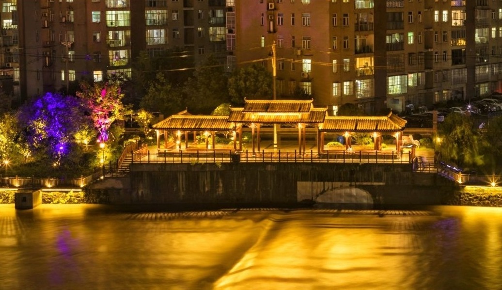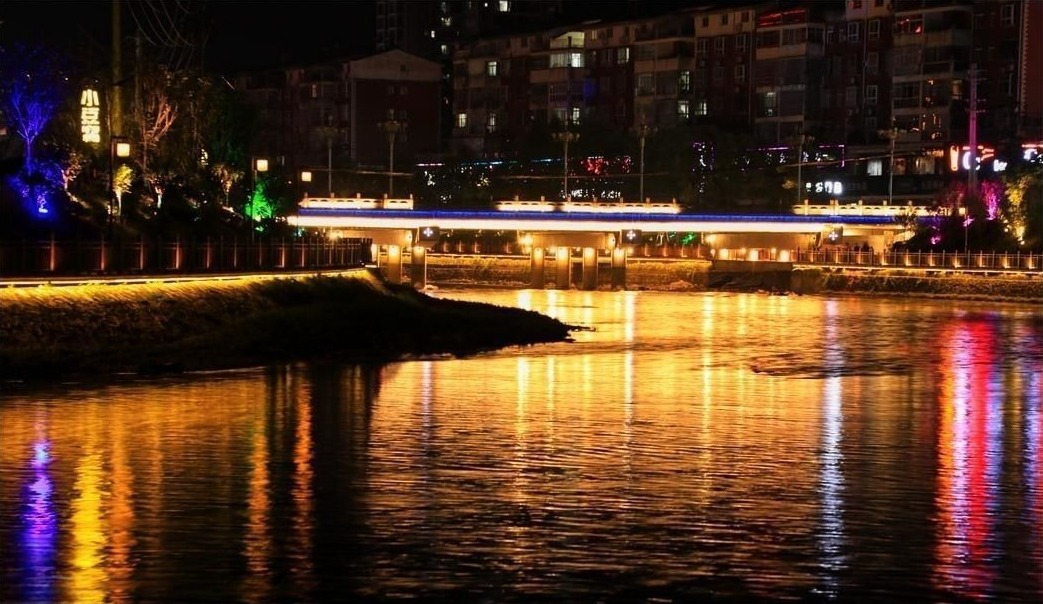 ▲灯光五彩缤纷,柔和又梦幻,照在河面上就像镶嵌了无数璀璨的钻石