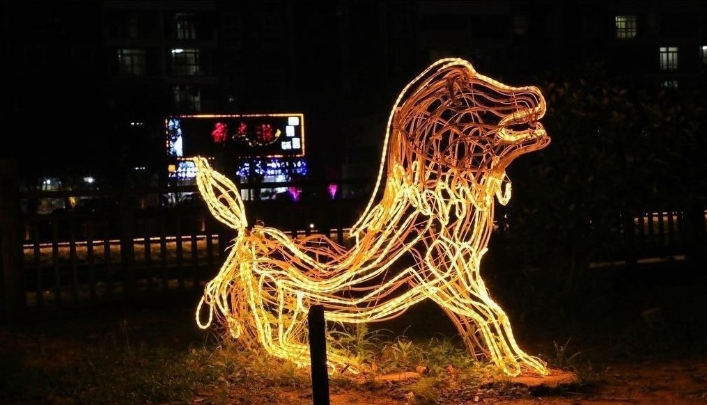 ▲草坪上的各种灯光造型惟妙惟肖,充满童趣。
