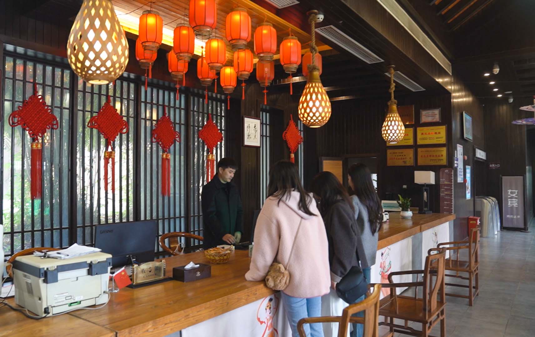 冬至后的白霓镇浪口村层林尽染、景观别致。12月21日,在浪口温泉入口处的停车场停满了游客的车辆。走进游客接待大厅,不少游客正在工作人员的热情引导下有序进入温泉区域。