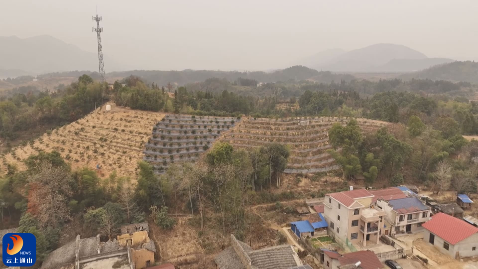 远眺高坑村新塘山上,满山橙树郁郁葱葱。村民袁达强流转百亩荒山,种上了桔橙。通过配套建设喷灌设备,一人便能管理百亩果园。现在 2-3 年树龄的橙树仍在抚育期,到丰产期年收入可达百万元。