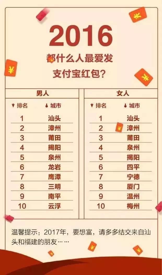 2016年,在发红包排行榜上,广东汕头人最豪爽。