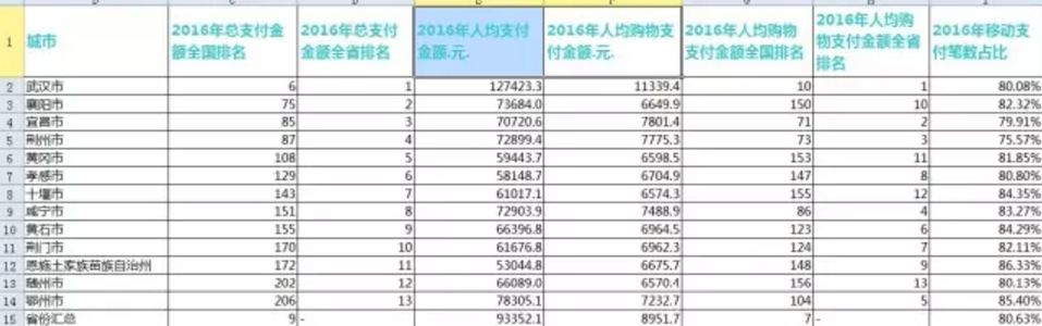 咸宁2016年人均支付金额达72,903.9元,排名全省第八;