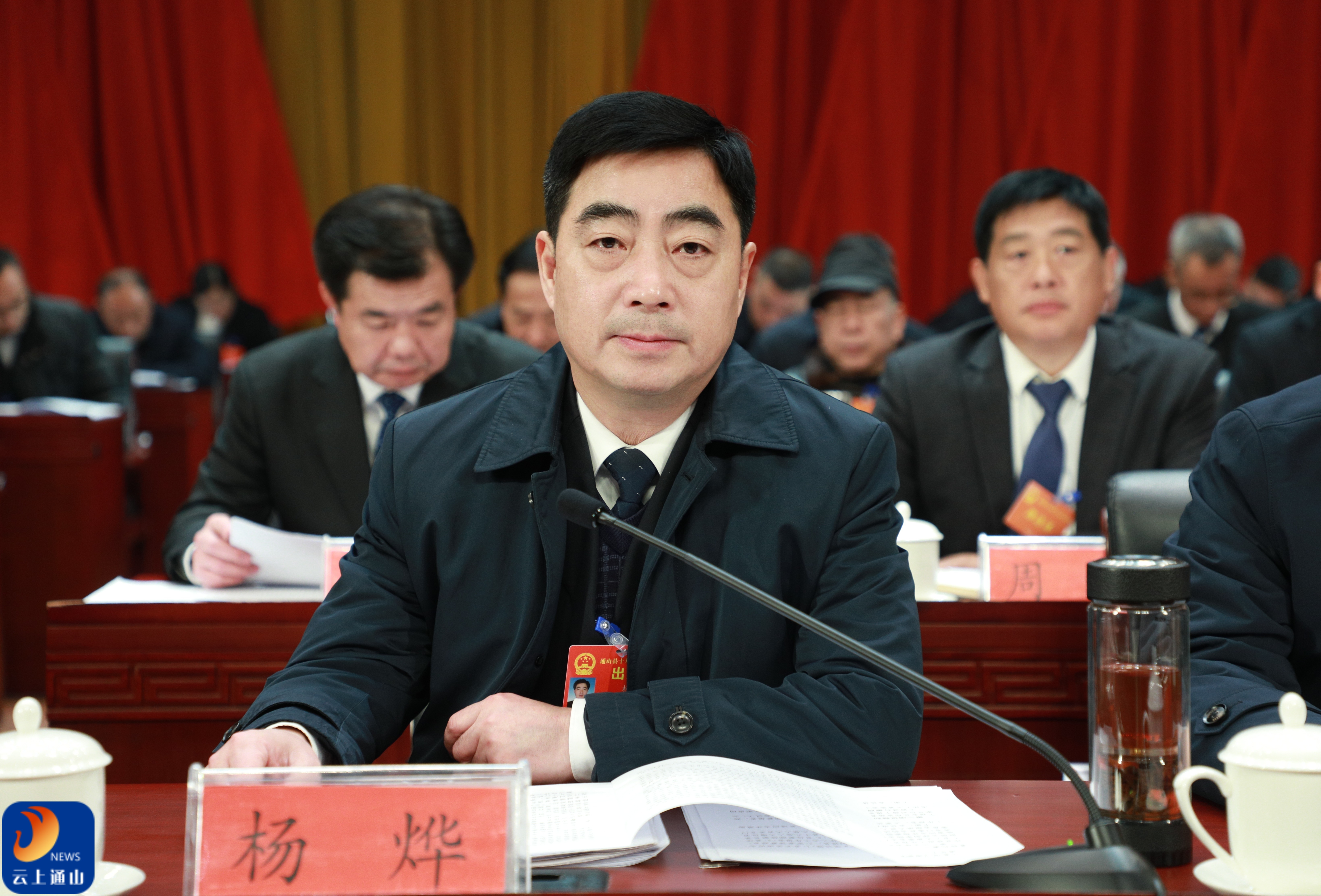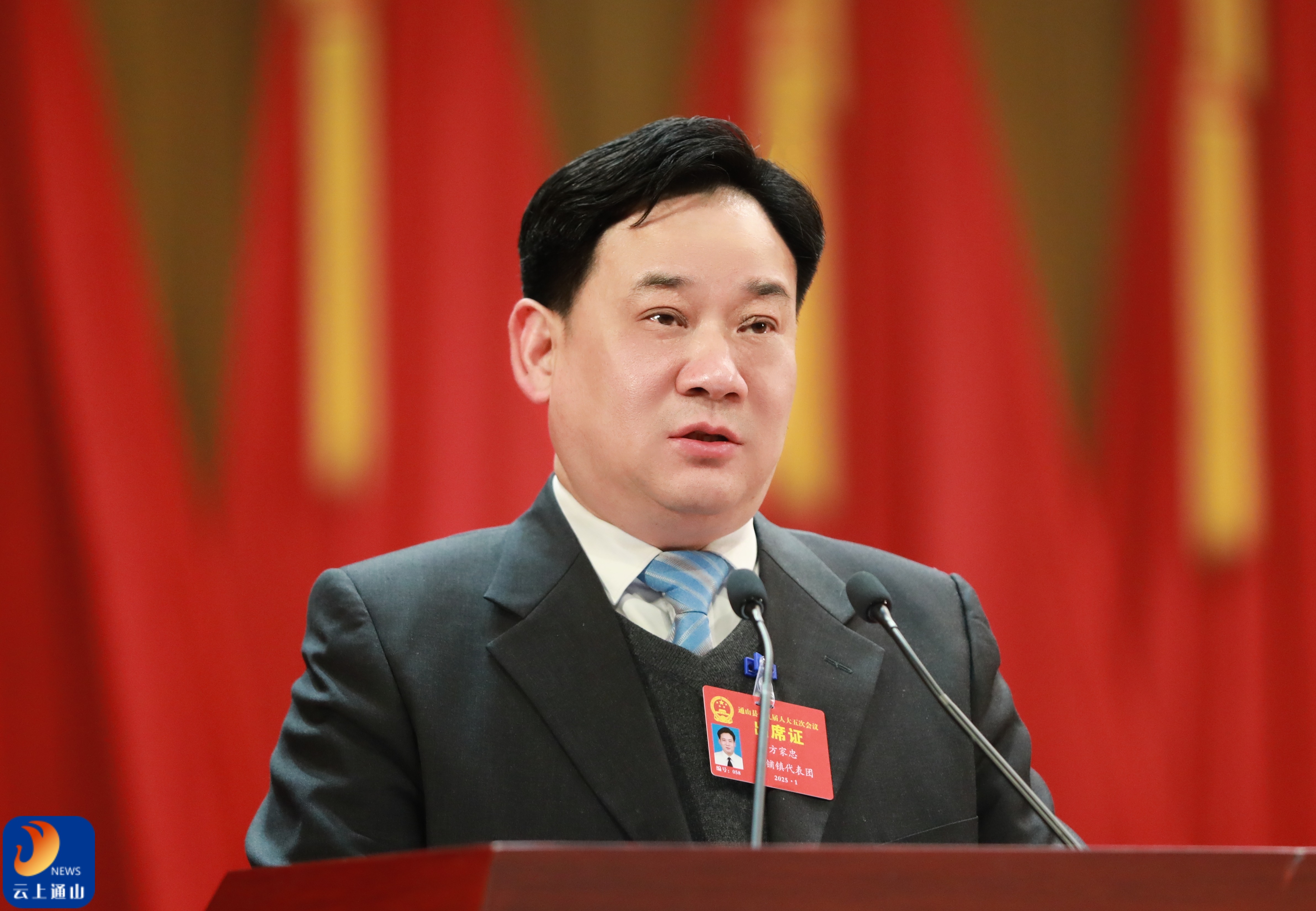 ▲杨烨主持并宣布通山县第十九届人民代表大会第五次会议开幕。