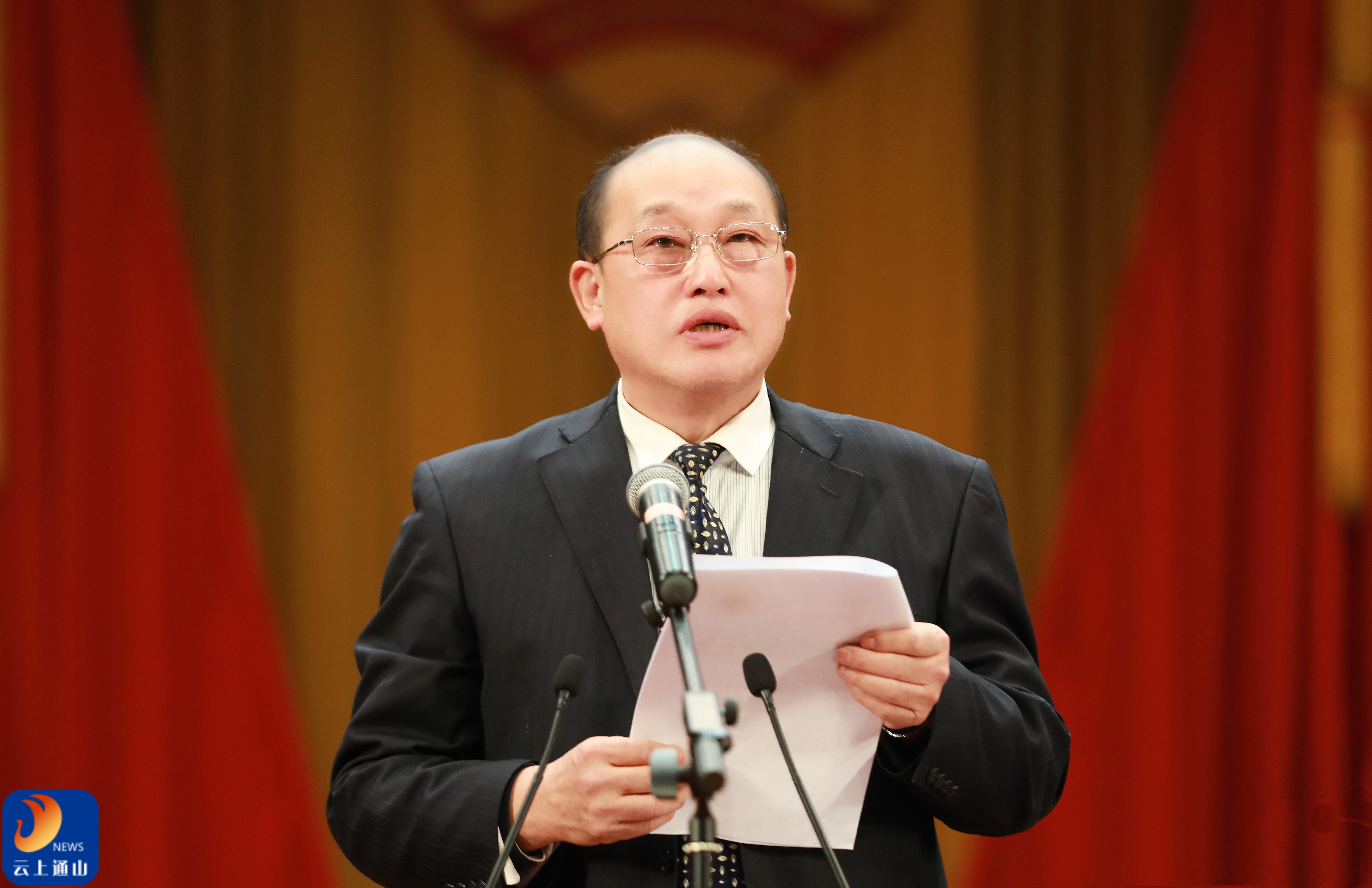▲吴柏林主持政协通山县十一届四次会议选举大会。