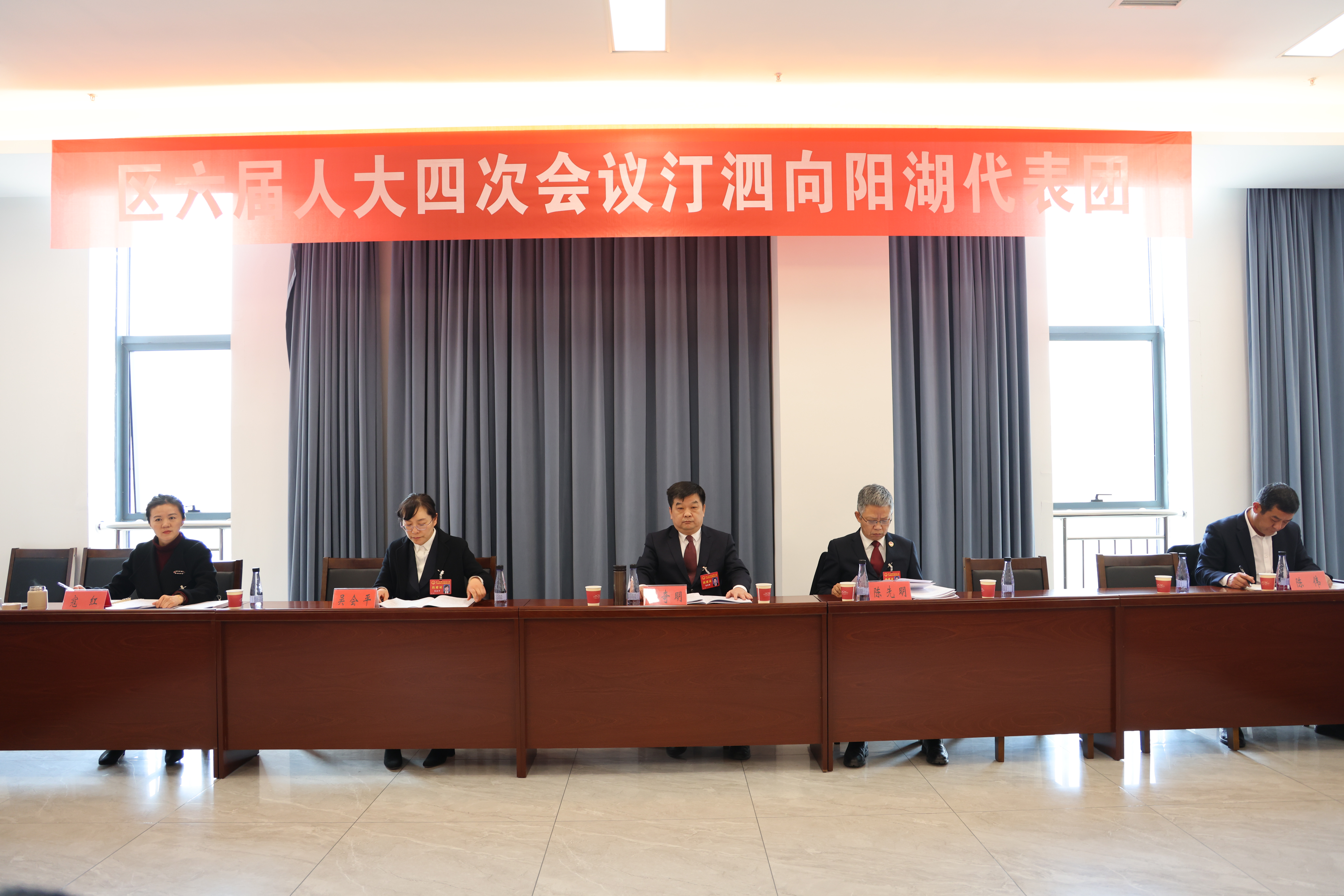 区领导万龙、胡小军、周和平、杨剑、罗继红、赵东、姜黎明、洪声耀、丁玲、杨钱在各自代表团参加审议讨论。